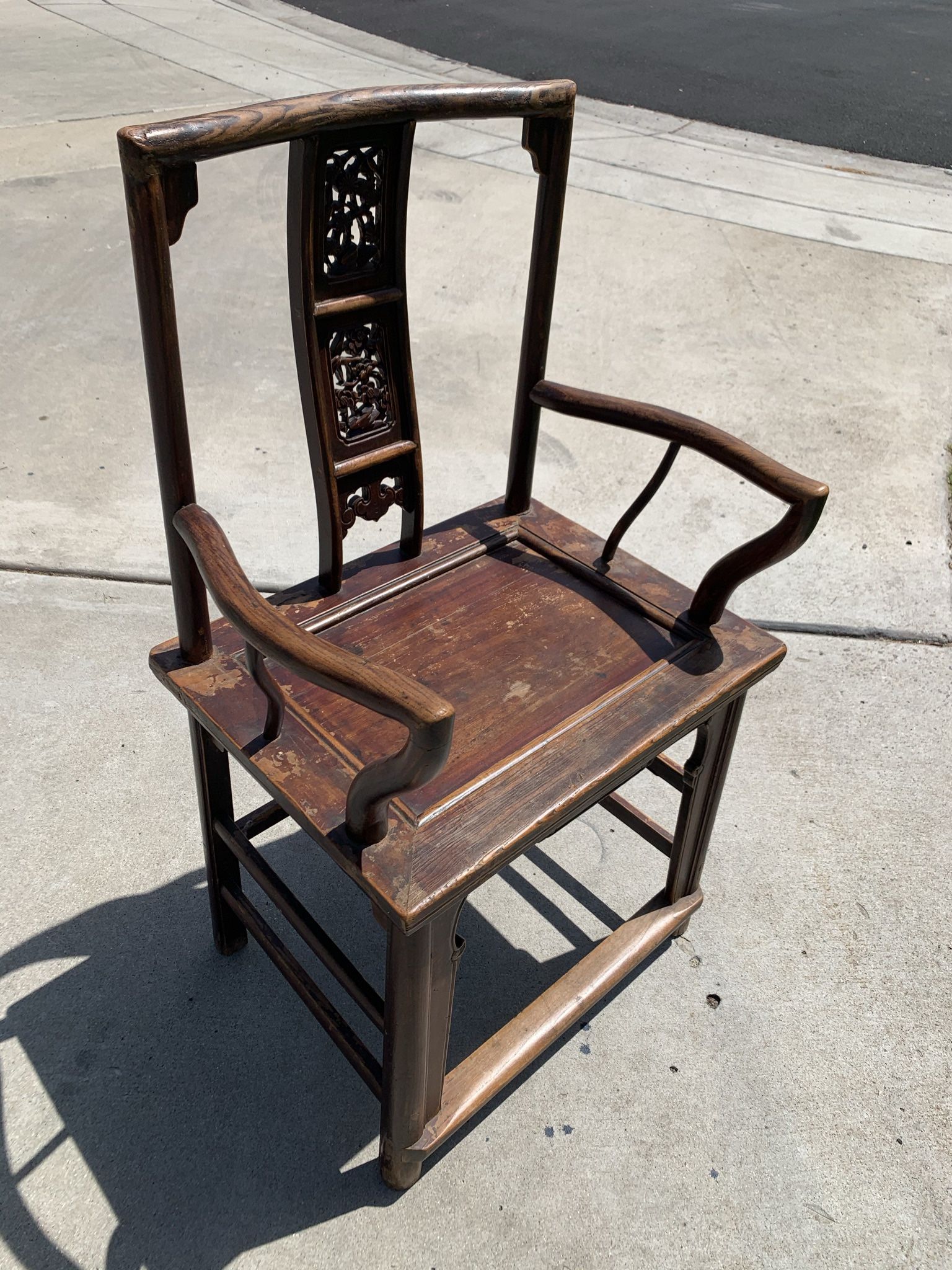 Qing Dynasty Carved Rosewood Solid Wood Throne Chair -Measurements are in the pictures -From the late 19th century. -Pickup in Tierrasanta off of the 15. FCFS. Cross posted. -No free holds. I will accept payment using PayPal or Venmo and then hold your item until you can pickup. -Comes from a Pet/Smoke free home -Item has been cleaned and sanitized: from a CoVID free environment. -Delivery is possible on this item. Location will dictate cost. Full prepay will be required prior to delivery. -See pics for the condition of the actual item that will be purchased. **Please reach out to me with offers. I'm a motivated seller and always looking to make a deal!**