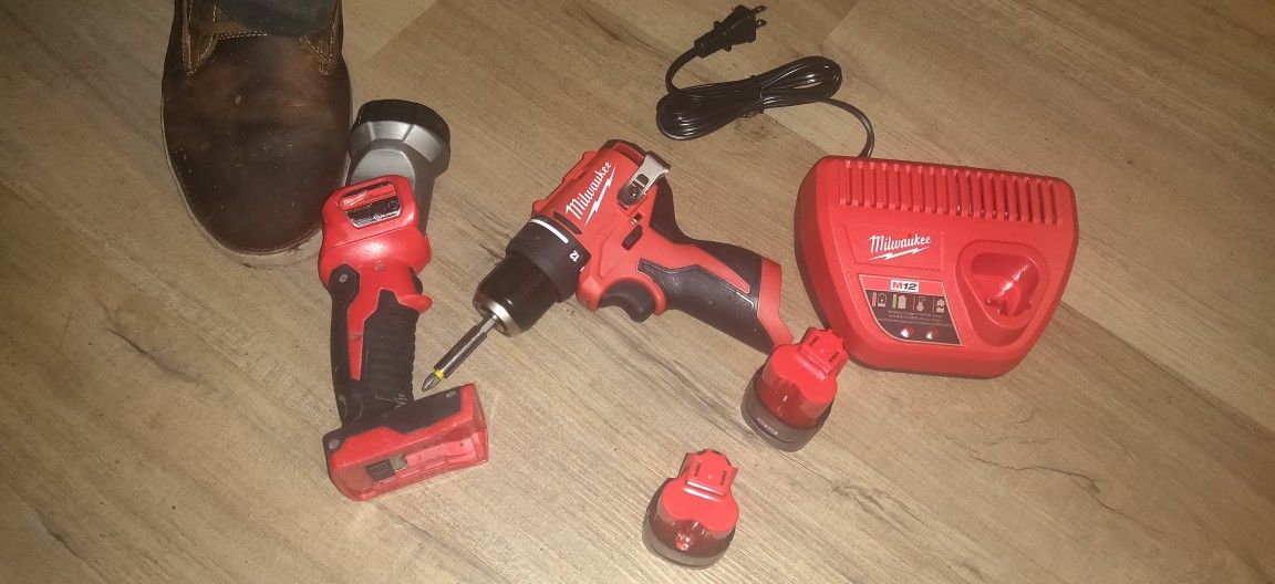 Milwaukee M12 Drill Two Batteries W Charger And Bag
