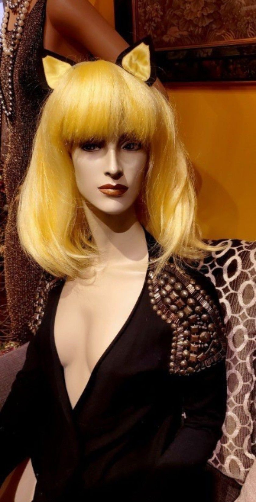 Brand new wig for sale. Yellow color. Kitten ears on top. Adult size. Has tags on. Super cute for Halloween dress up.