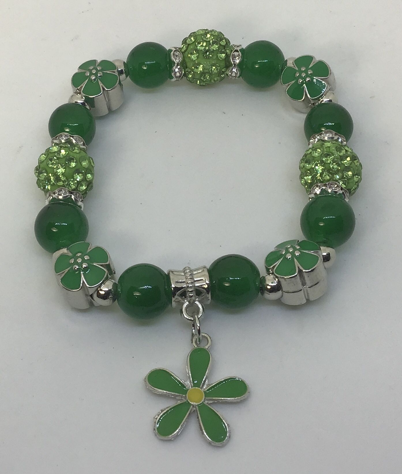 Green Pendant Flower And Beads Bracelet