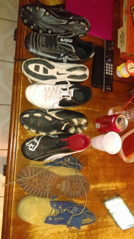 Boys shoes used ..3 pairs of soccer shoes and 1 timberland boots all 4 pairs for 40$ ..all come together ..not separate ..
