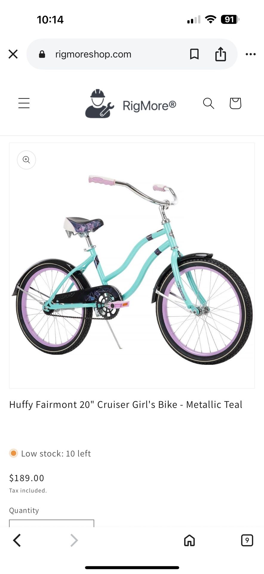 Huffy Fairmont 20" Cruiser Girl's Bike - Metallic Teal