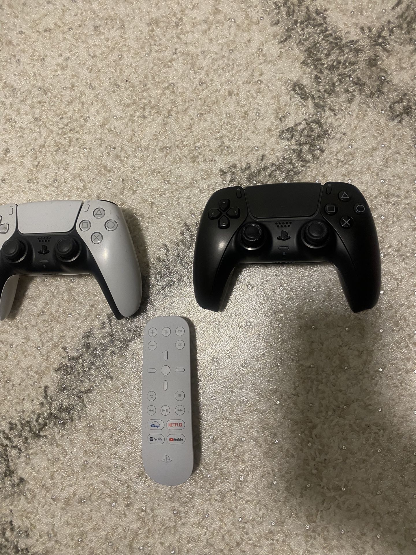 2 PS5 controllers (stick drift) One black One white Ps5 media remote