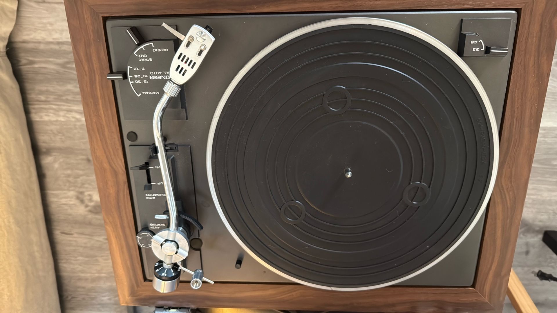 Awesome original record player, works with receiver and speakers. Oldie, but a goodie. Toddler, touched needle so might need a replacement. Still works- Original. Can’t buy these anymore!