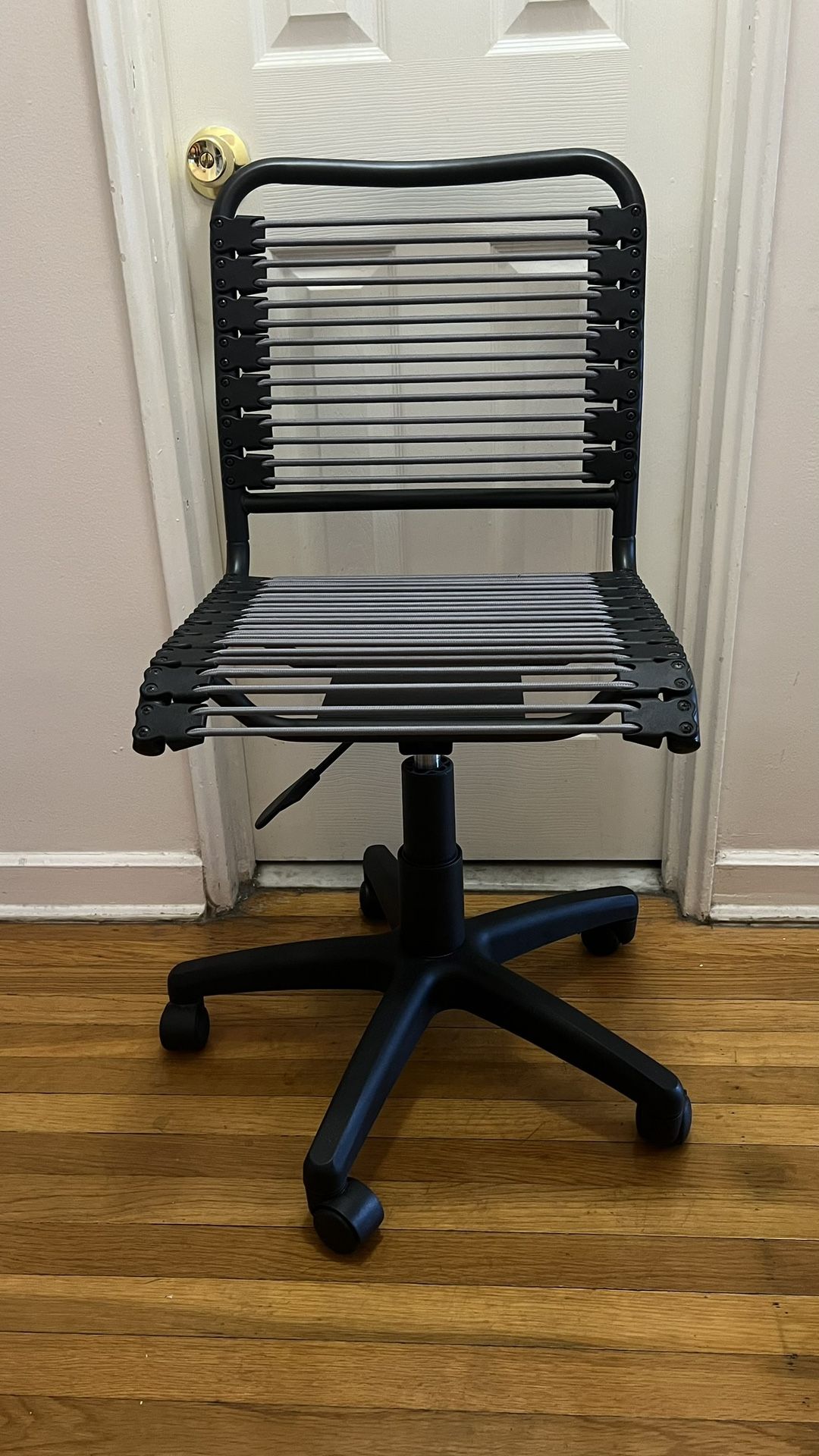 In perfect condition! Used for about 2 months before changing up my work from home space. Retails for $190+tax. Chair has a black frame with gray bungee cords. The patented bungee cord system uses a series of individual bands wrapped in polyester that cradles your back, providing exceptional lumbar support. The contoured seat design provides ample support and comfort, reducing pressure points and promoting proper posture. Pneumatic lift easily adjusts the height of the seat from 16-1/2" to 20", promoting proper posture and ergonomic positioning. Seat measures 18" wide x 15-1/2" deep. Sturdy wheeled base ensures smooth mobility, allowing you to easily move around your workspace. Its compact size suits smaller spaces, and the robust wheeled base allows for effortless movement. Powder-coated steel frame has a weight capacity of up to 450 pounds. Breathable bungee material allows for air circulation, keeping you cool and comfortable even during long work sessions. Pick up only, near Astoria Park - Queens NYC 11102 Only Cash (preferred) or Venmo for payment Check out my other listings!