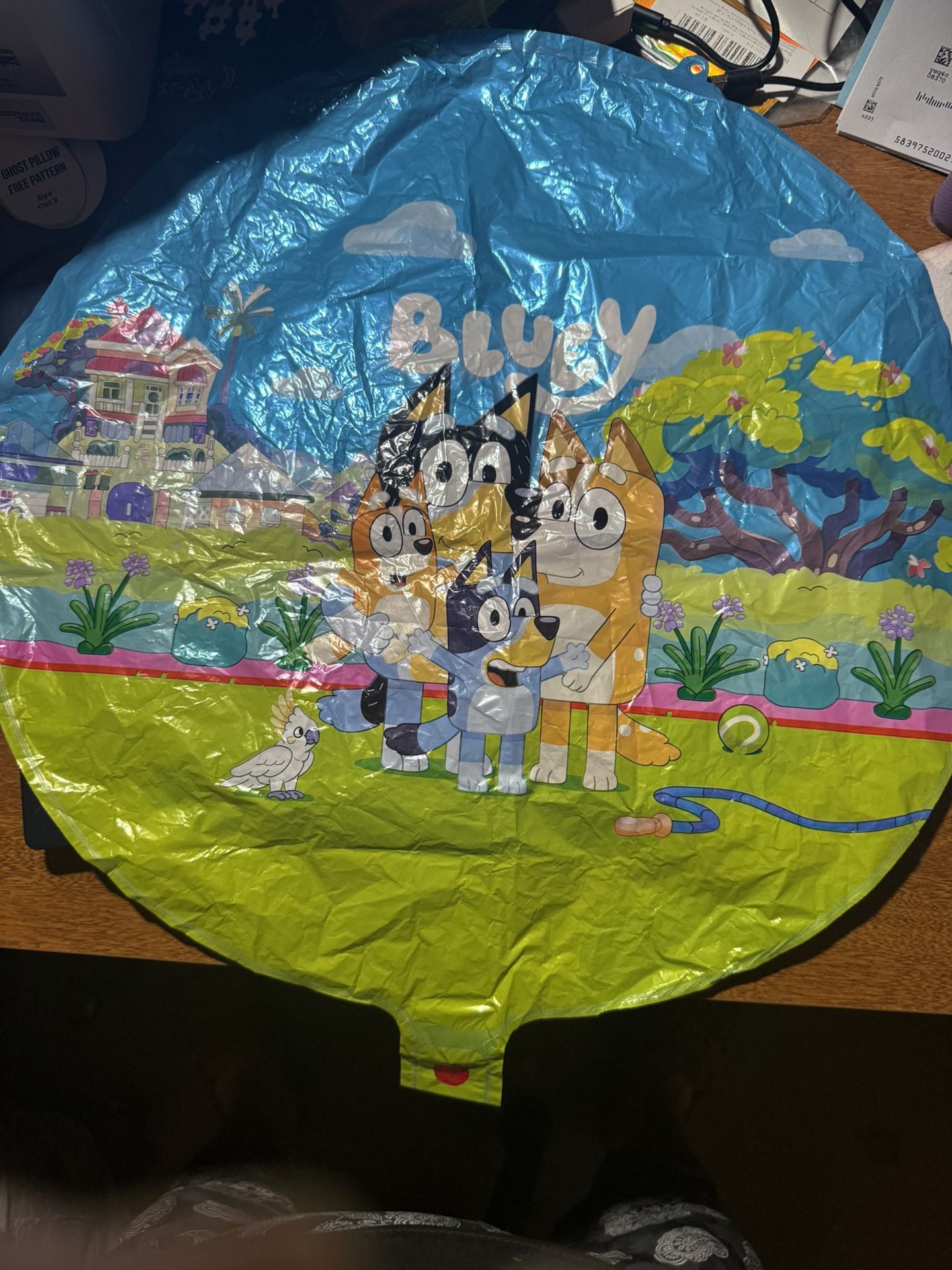 Bluey family birthday balloon with two stars three rubber balloons 2 Jibits for crocs and a tablecloth