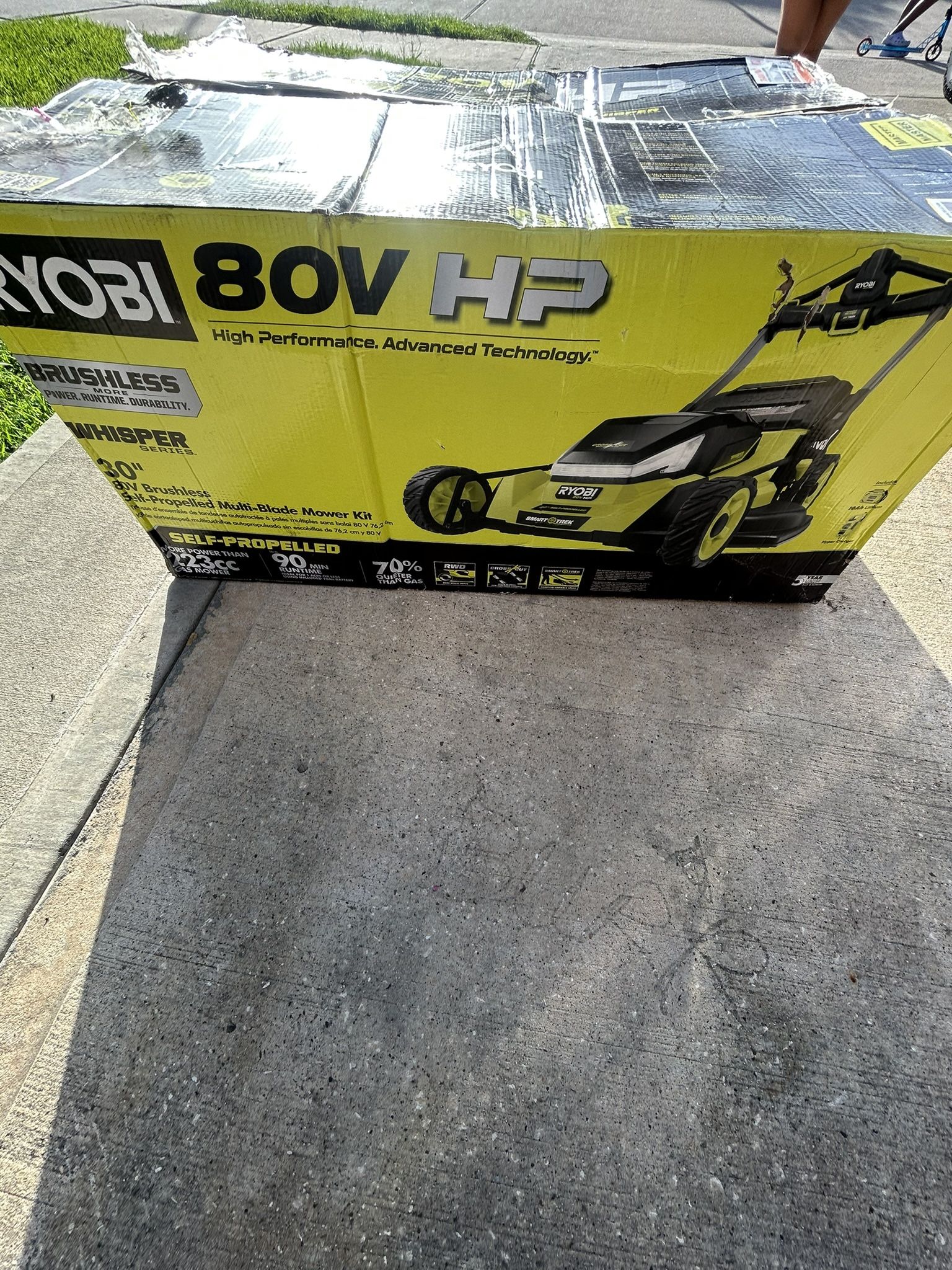 2025 Brand new never used RYOBI 80v push mower comes with suitcase battery and charger