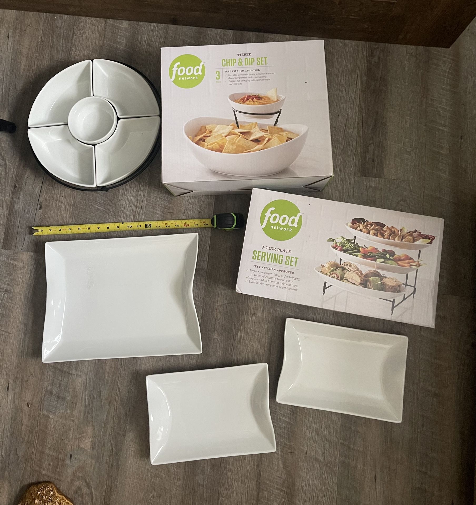 Selling all together. Chip and Dip set unopened. 3 tier serving set in unopened. Other pieces are like new and barely used. Cannot deliver. Make offer.