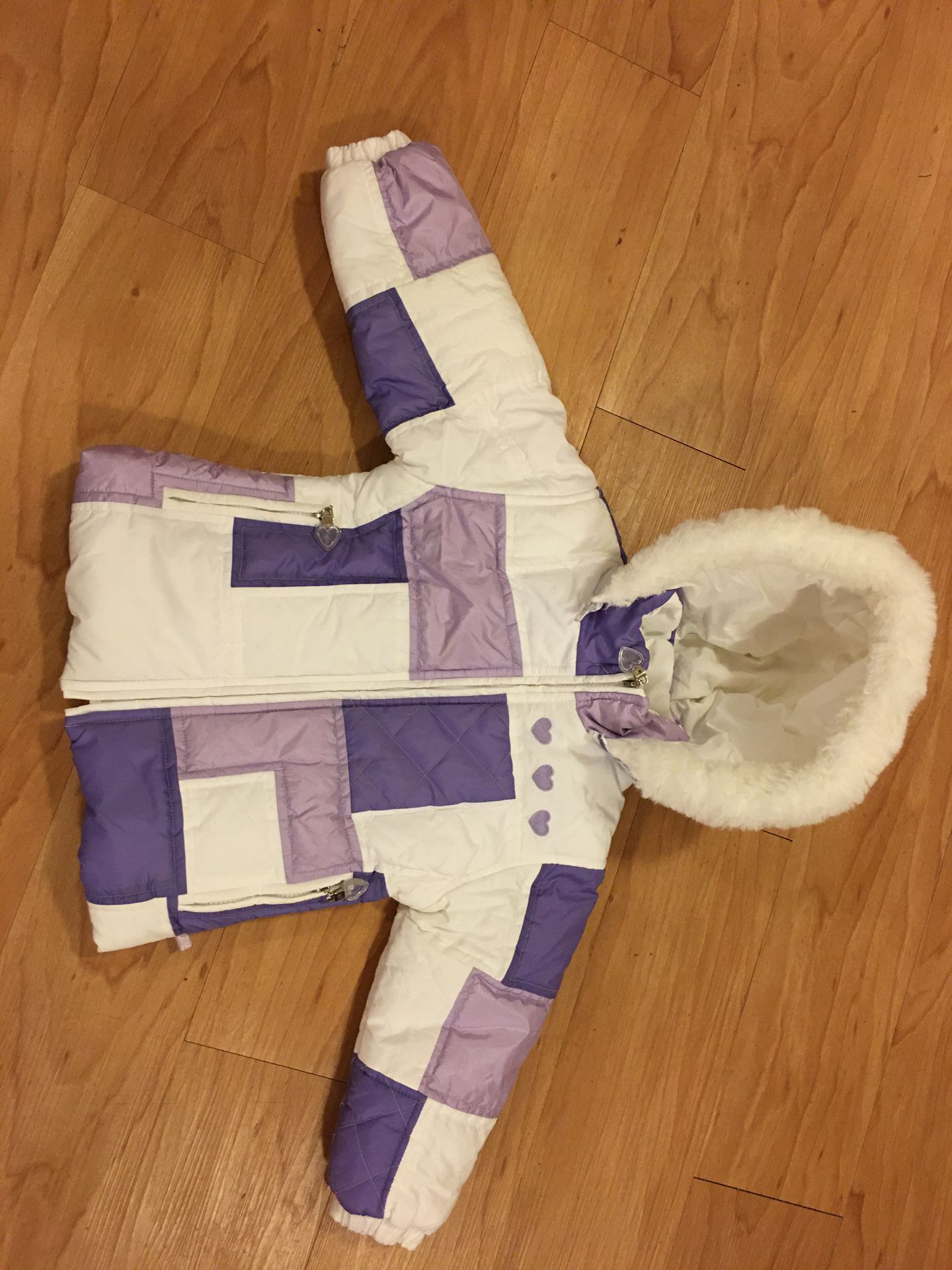 Excellent condition. Zippered pockets and zip on/off hood. Smoke free home. My daughters name is on inside tag.