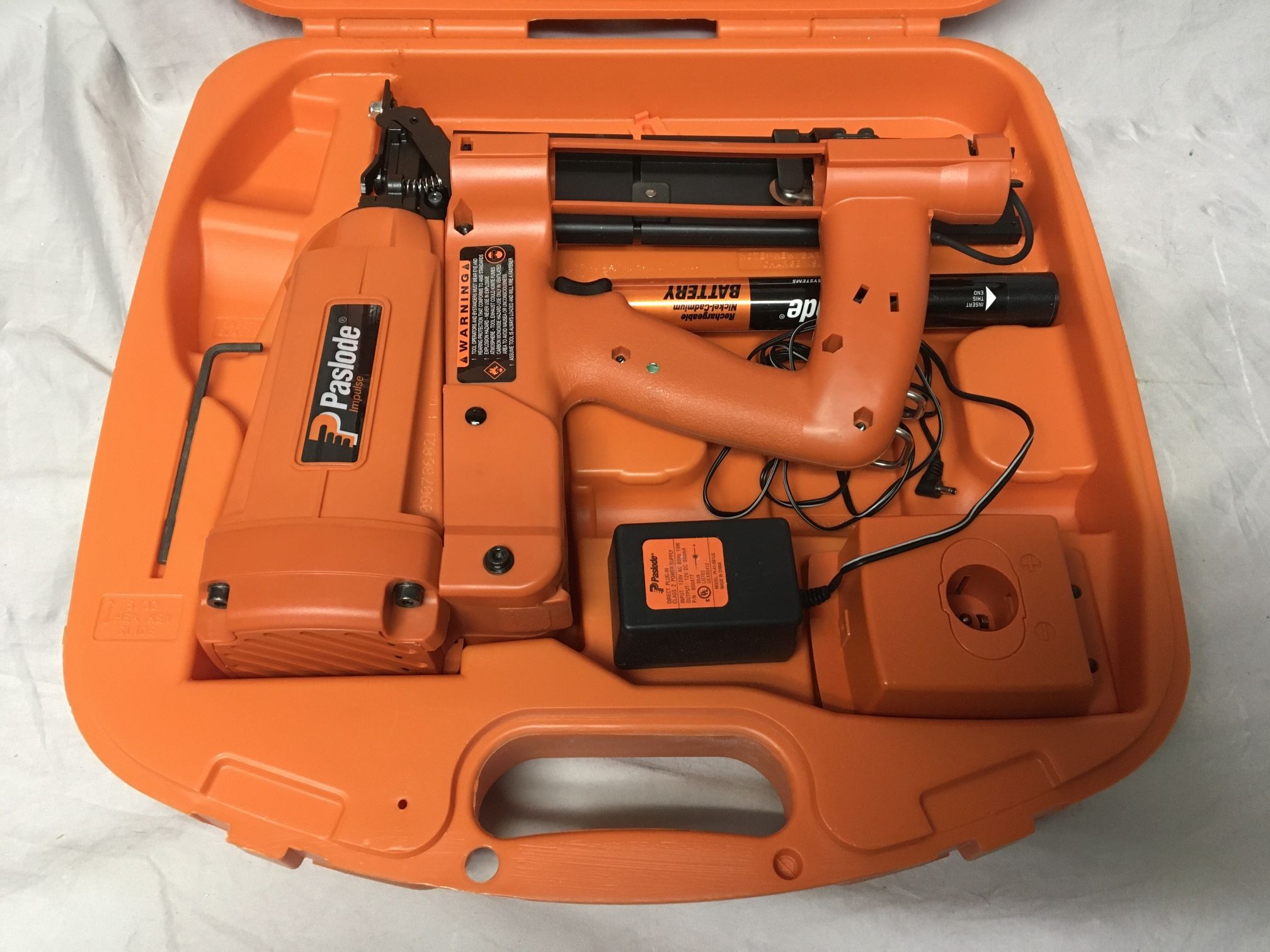 Paslode 16 gauge cordless crown utility stapler in orange case in good condition Model 900078