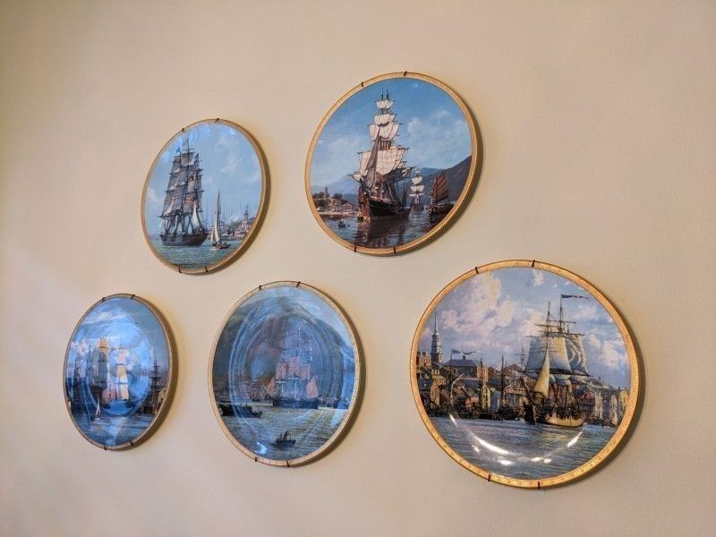 5) Collectable Nautical Plates Ocean Decor Collection 24k Gold Rim Set Hamilton PASSAGE to CHINA American Ships by Raymond Massey 11" Plates