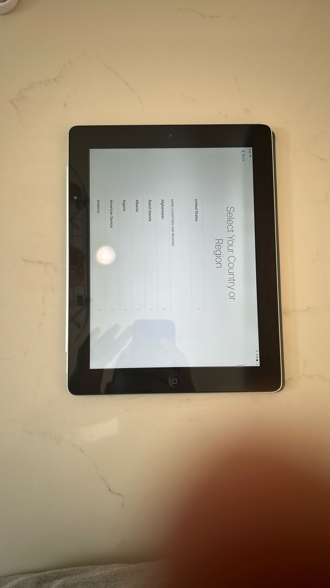 Bought at a garage sale and it’s locked. Great buy if you can figure out how to reset. Key Specs • Model Numbers: • Wi-Fi only: A1416 • Wi-Fi + Cellular (AT&T): A1430 • Wi-Fi + Cellular (Verizon): A1403 (You can confirm this by looking at the tiny text near the bottom back of the iPad.) • Display: • 9.7-inch Retina Display • 2048 x 1536 resolution at 264 ppi • Processor: • Dual-core Apple A5X chip with quad-core graphics • RAM: • 1 GB • Storage Options: • 16 GB, 32 GB, or 64 GB (non-expandable) • Camera: • Rear: 5 MP iSight camera, 1080p video • Front: VGA-quality FaceTime camera • Operating System (Original / Max): • Shipped with: iOS 5.1 • Max iOS version: iOS 9.3.5 • Ports: • 30-pin dock connector (not Lightning) • 3.5 mm headphone jack • Battery Life: • Up to 10 hours of web use on Wi-Fi • Weight: • About 1.44 pounds (652–662 g)
