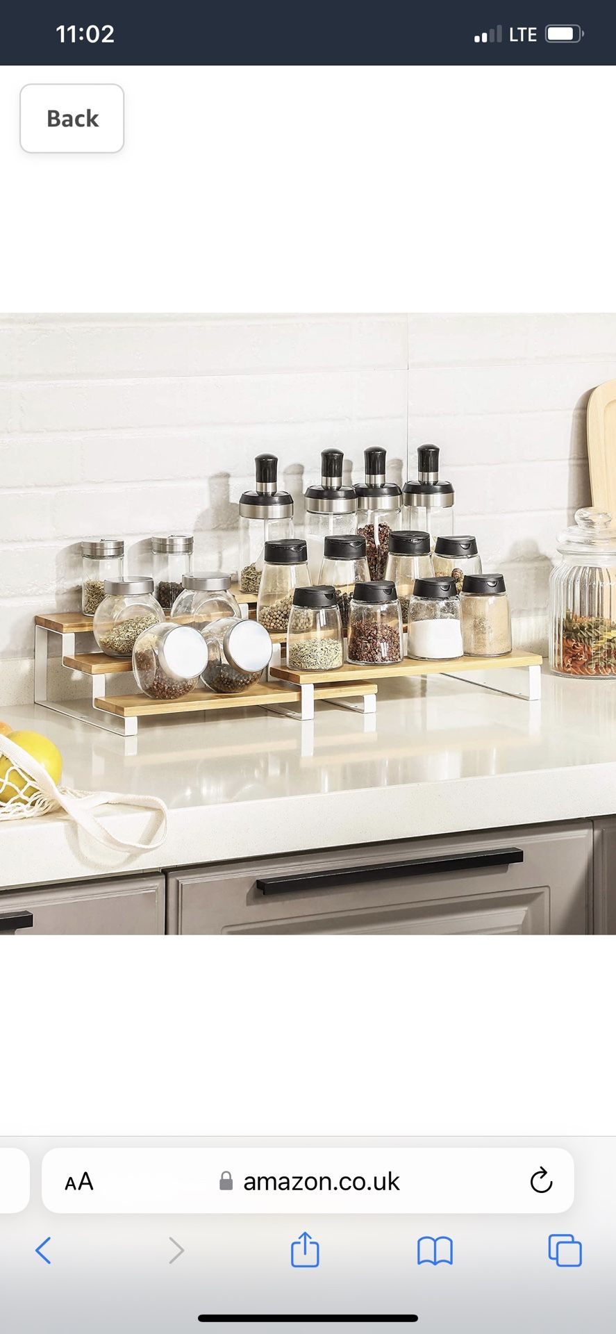 SONGMICS Spice Rack, Set of 2 Cabinet Shelf Organisers, 3-Tier Extendable Spice Holder, Bamboo, Stackable, for Pantry, Cupboard, Countertop, Natural a