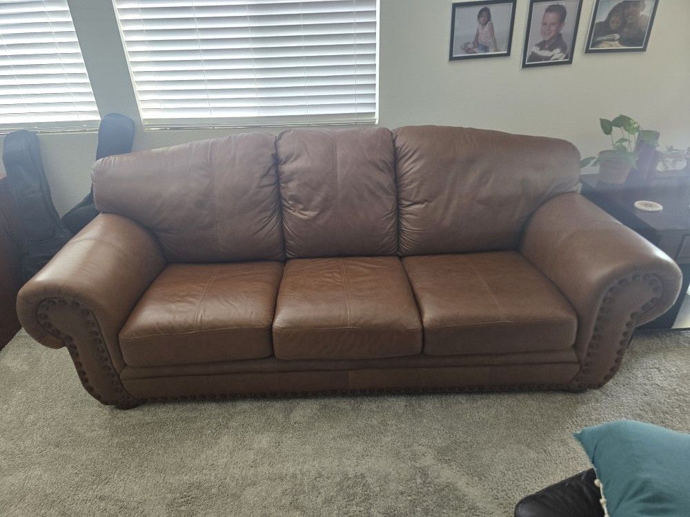 Sofa: approx 7' x 3.5' x 3' Chair: 4' x 3' x 3' Both in excellent condition.