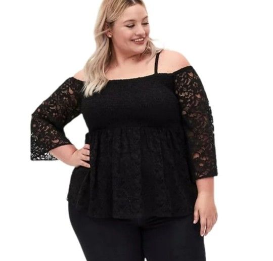 Torrid Black Lace Cold Shoulder Smocked Babydoll Top Size 2