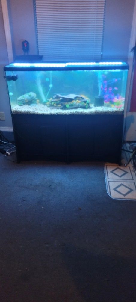 I upgraded to a 120 gallon, so I don't use this one anymore. Comes with lights, filter stand, and heater delivery available