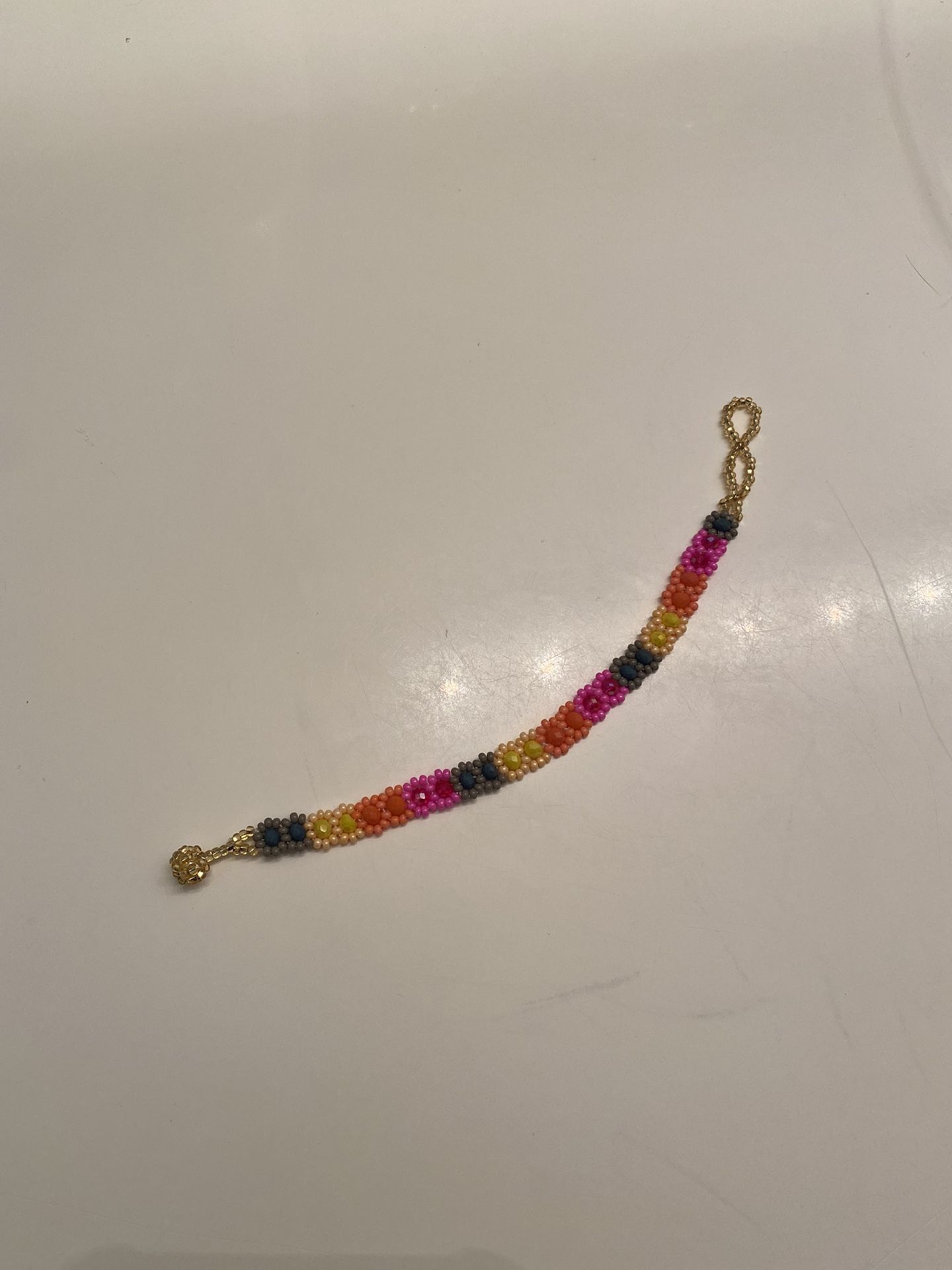 Huichol Beaded About 8” inches Pink, coral, gray, and light yellow