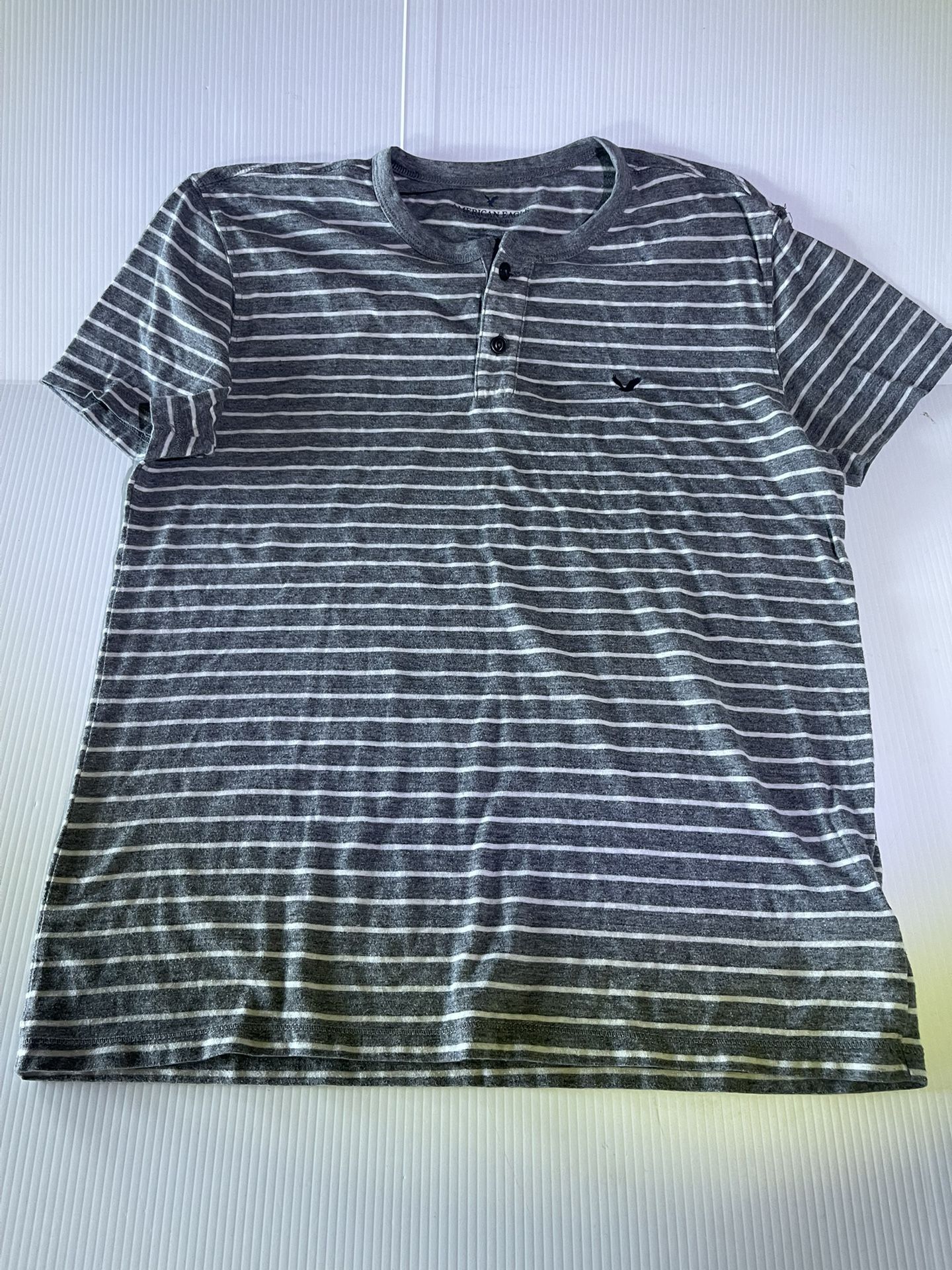 American Eagle Outfitters Men’s Short Sleeve Gray And White Henley Shirt