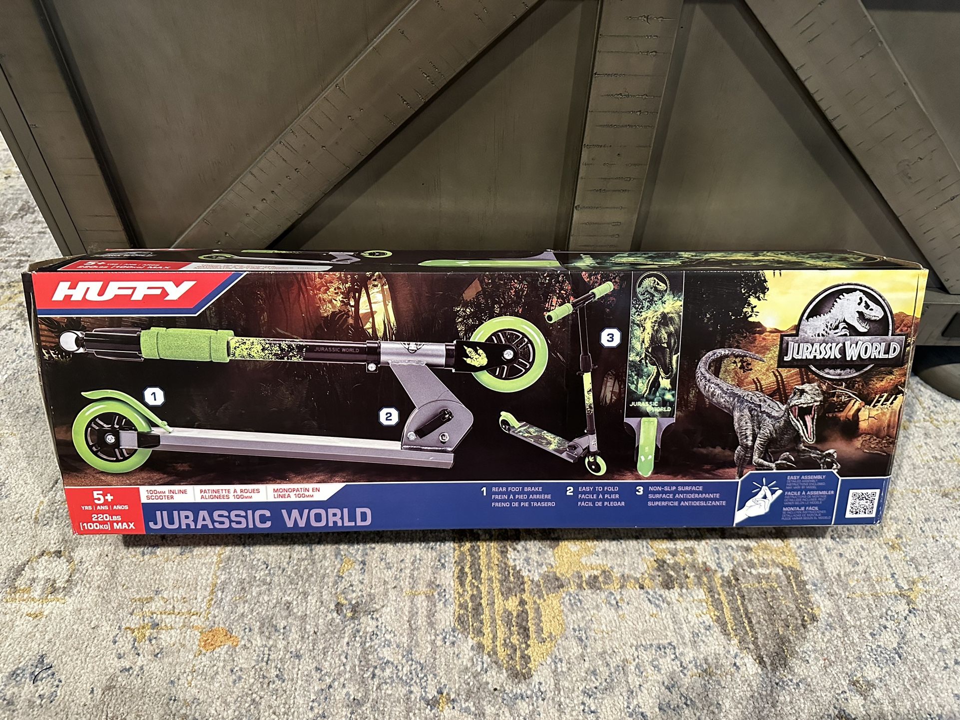 Huffy Jurassic World Boys' Inline Kick Scooter for Kids Folding Toddler, Child, Teen Max Weight 150lbs New Never Used