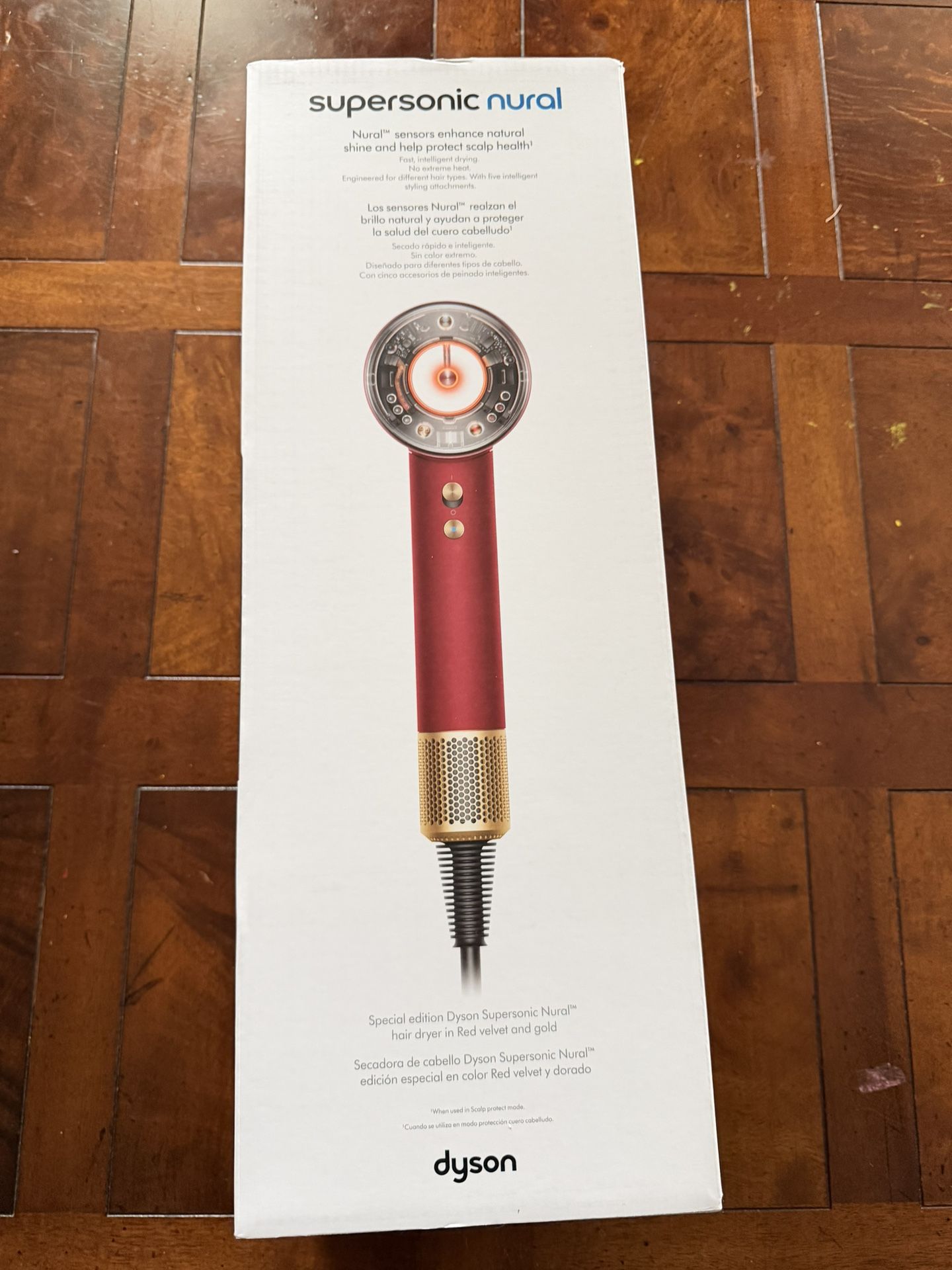 Dyson Supersonic Nural™ Hair Dryer – Special Edition (Red Velvet & Gold). Fast, powerful drying with intelligent heat control to protect hair and scalp. in excellent condition. Serious inquiries only.