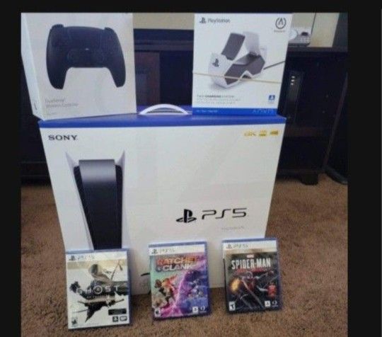 Get it before someone else does! Comes with 2 controllers, 1 controller charge/docking station, 1 PS5 headsets, spiderman, far cry 6, ghost and more games!