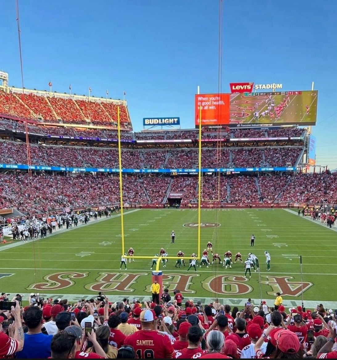 I am a season ticket holder with 4 seats available for the Niners - Seahawks game January 4 @ Levi’s Stadium End zone, section 103, row 22, seats 1-4 $400 a seat. Tickets transfer electronically. Willing to met in person for the transfer.