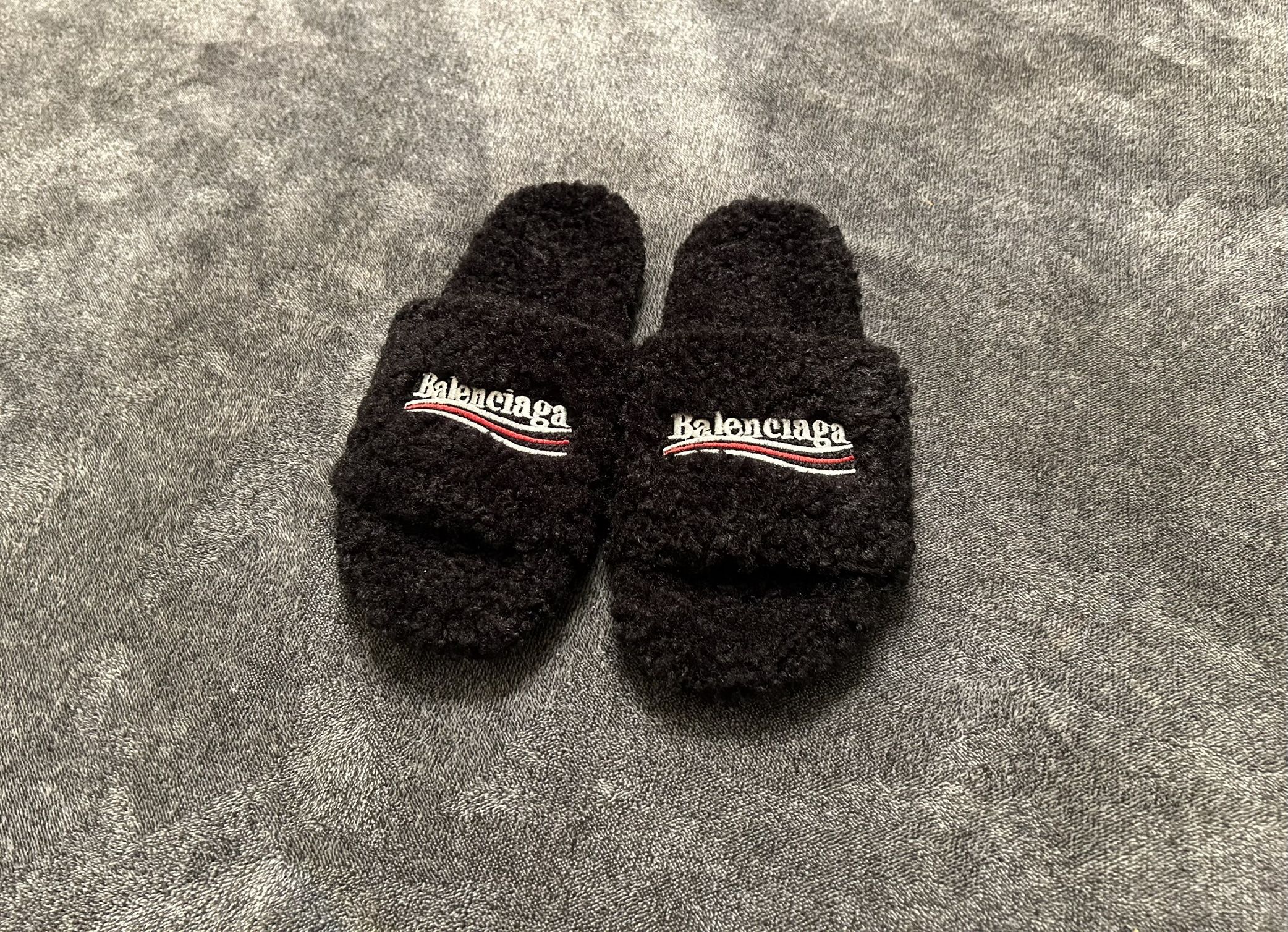 Black Balenciaga Fur Slides