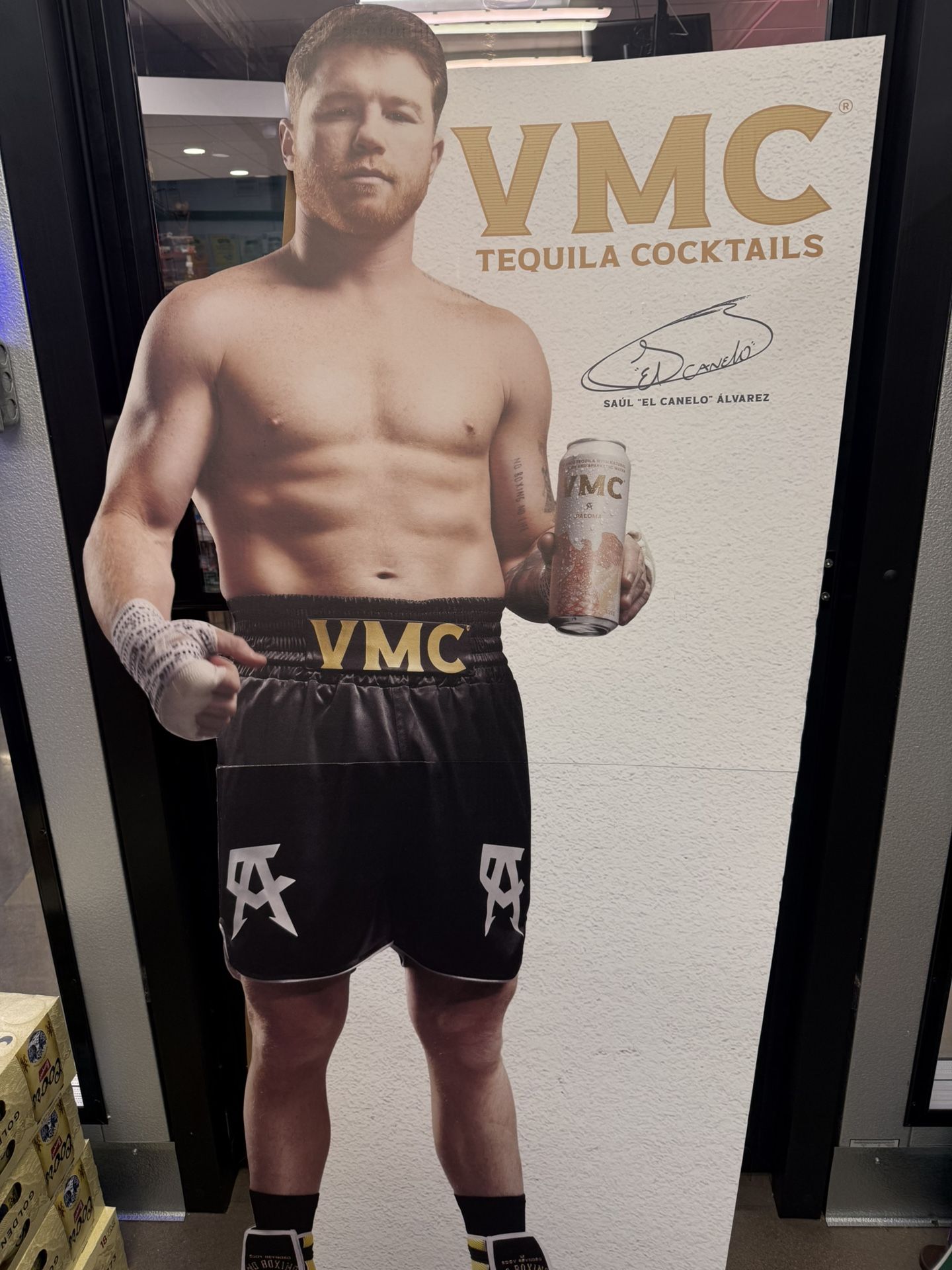 New in the box Canelo cardboard stand up. Over 5 foot tall. Located in the SW near the 99 and Hosking exit