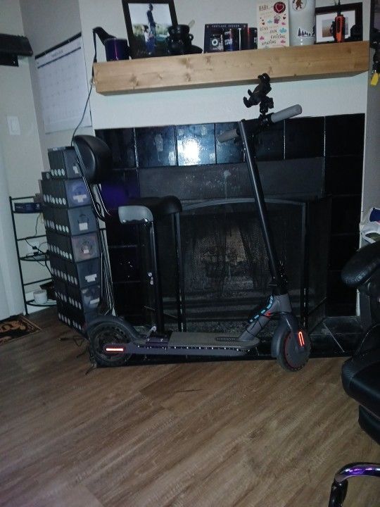It's an electric scooter.They can go up to twenty miles an hour for twenty miles in range , with a nice comfy seat and a phone mount and some lights attached on the bottom.