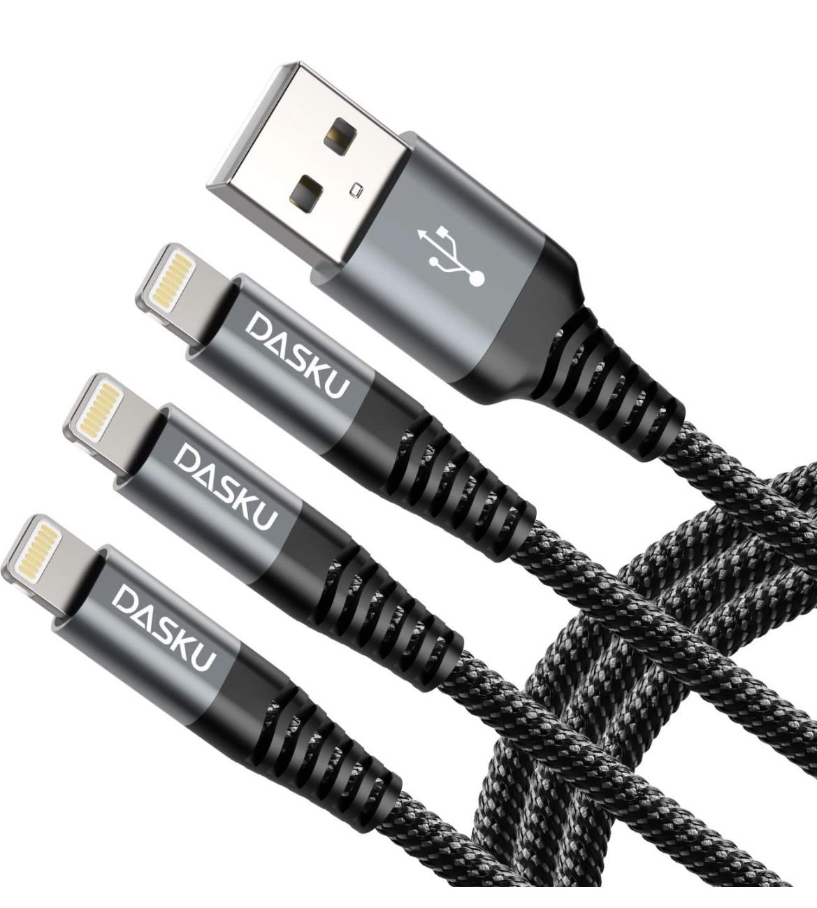 Dasku Lightning Cable 3ft 3Pack Nylon Braided Heavy Duty iPhone Charger Cord Black Compatible with 14/13 / 12/11 Pro Max/X/Xs Max/Xr /8 Plus/ 7 6S Plu