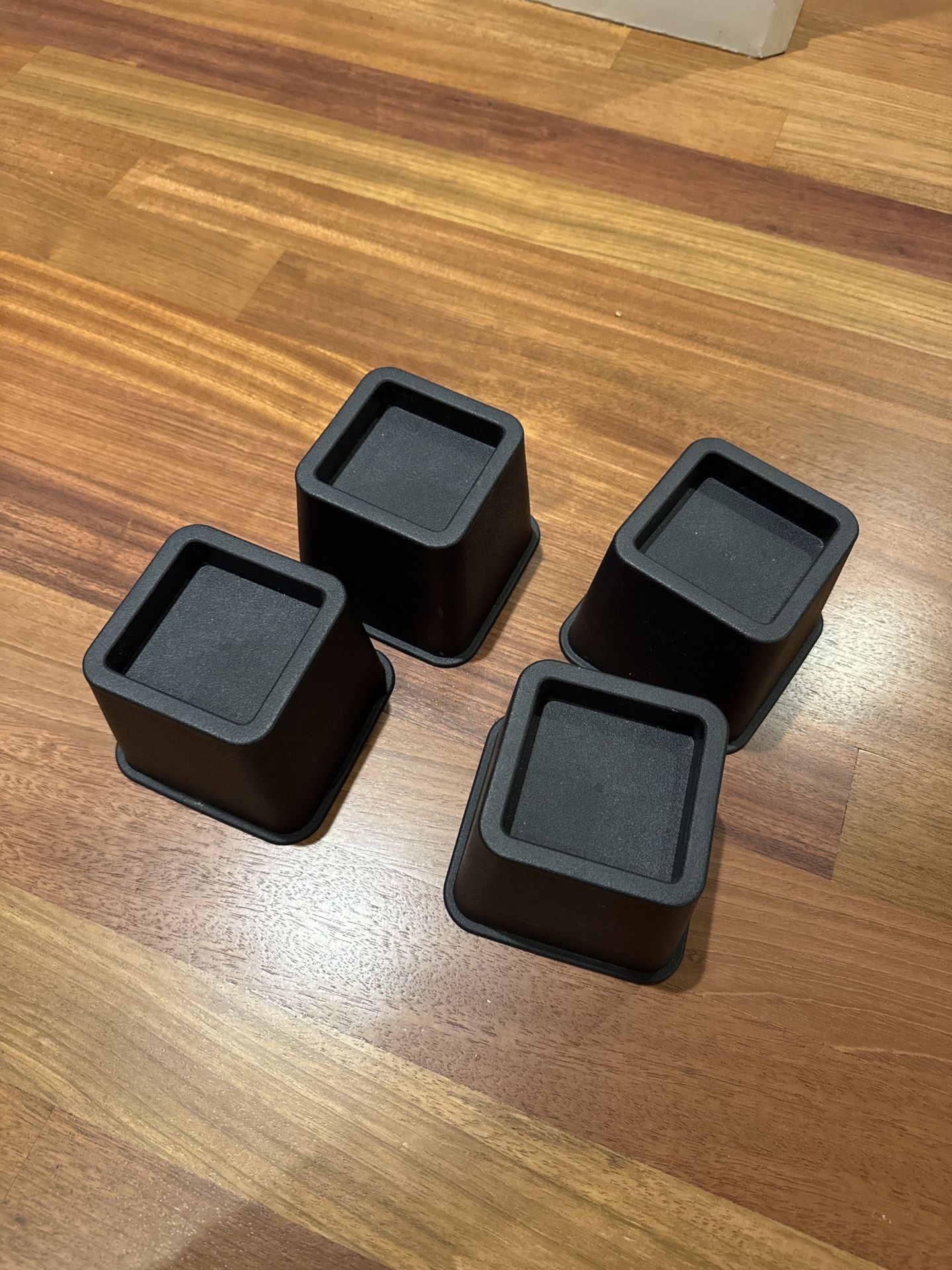 Need a little extra height for your table, desk, or bed? These sturdy risers lift your furniture for better ergonomics or under-bed storage. ✅ Set of 4 durable black plastic risers ✅ Adds approx. 3” of height ✅ Great for desks, beds, couches, or shelves ✅ Stackable and reusable 💸 Just $5 for the full set! 📍 Porch pickup – self-serve 📲 QR codes for Venmo / Zelle / PayPal are posted on the wall — just scan to pay!