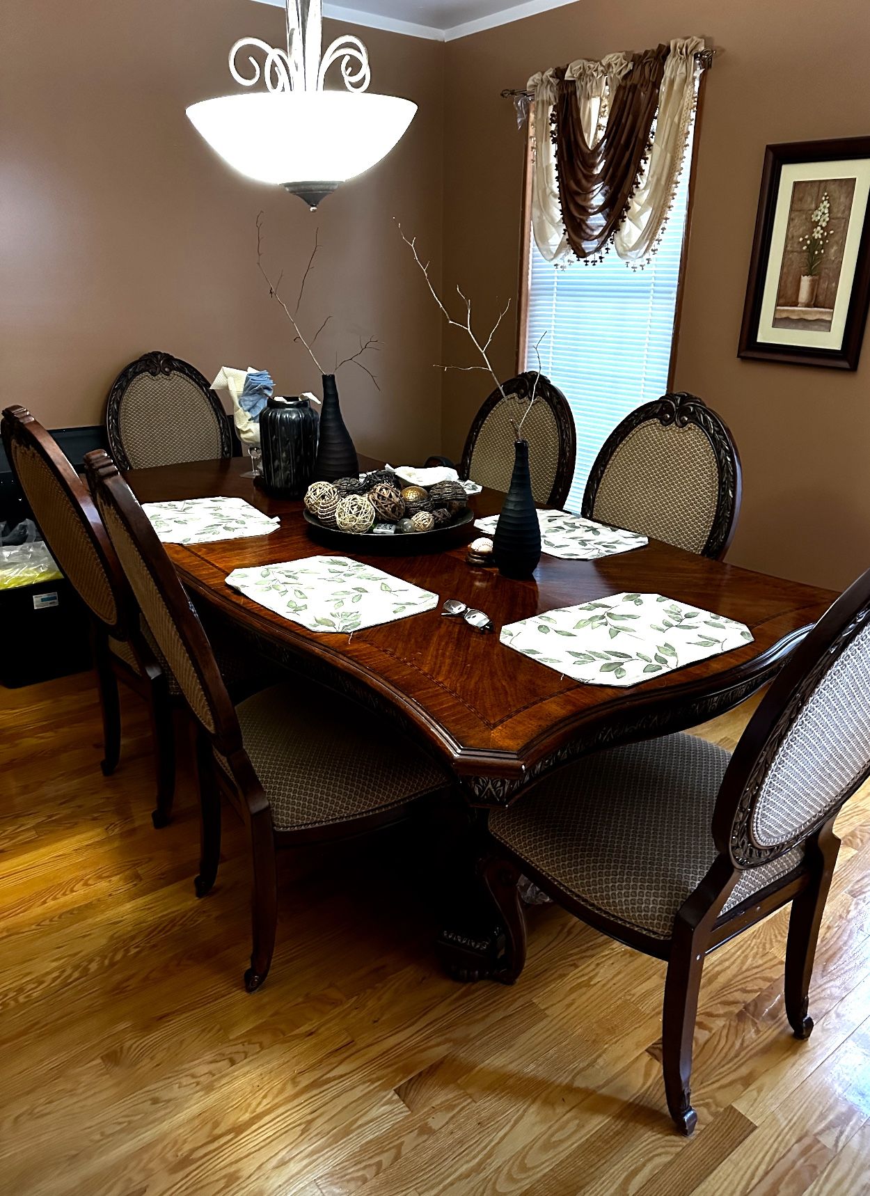 This a dinner table with 6 chairs and it can extend for more space if need is in good condition and I asked $900.00 for it or best offer buy is responsible to pick up at location need a large vehicle please only interested people any other will be reported to authorities location is on mount pocono pa