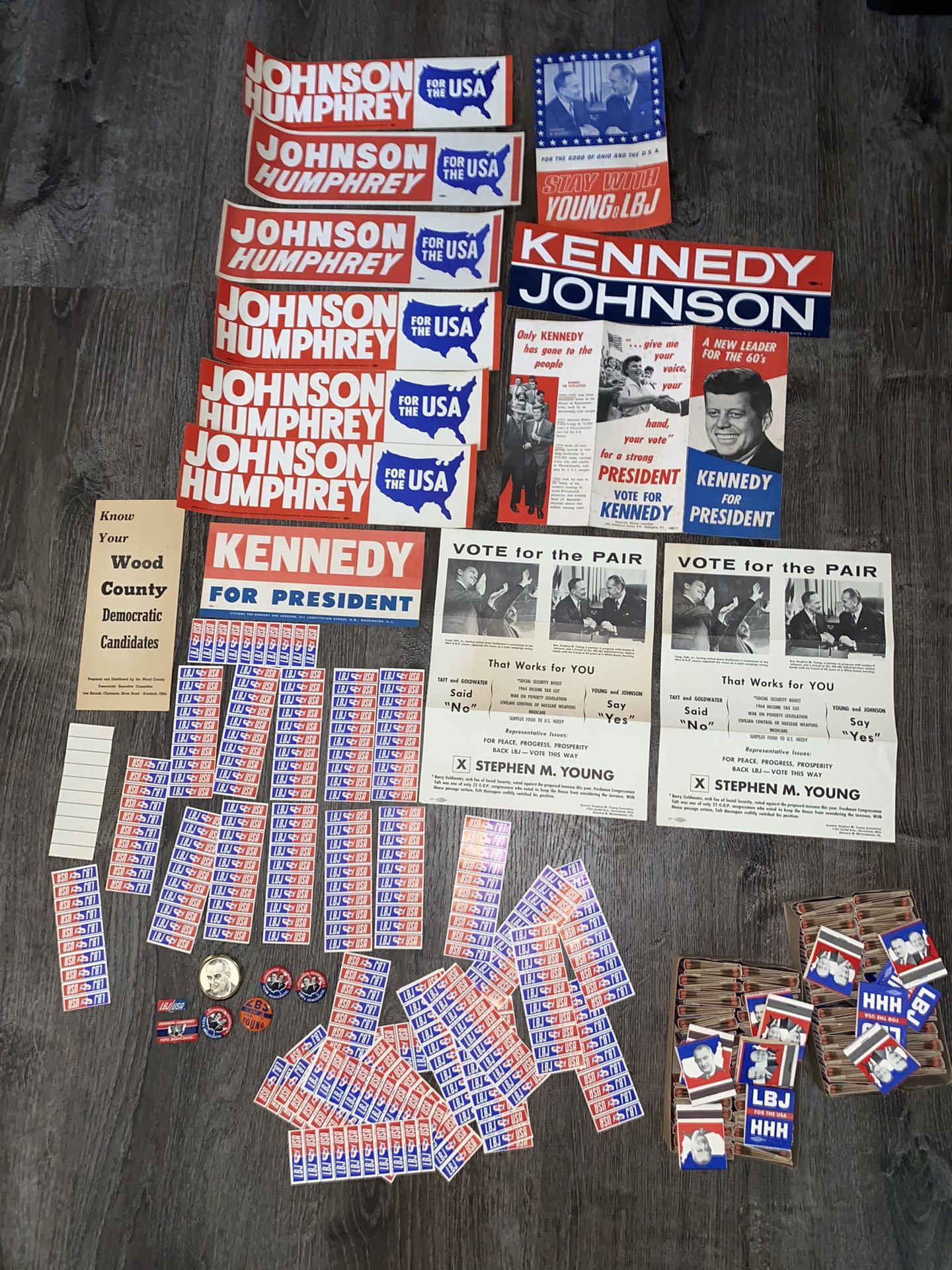 Lot of Vtg Presidential Campaign Buttons and stickers Kennedy Johnson Humphrey