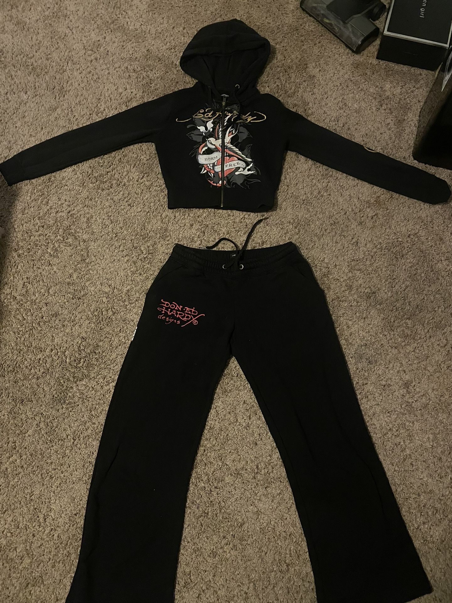 flared pants size M cropped jacket size M black w designs i got for 120 at zumies will let go for 80 and firm with the price!