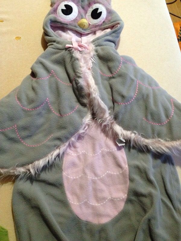 Owl costume size 4-6 adorable with tights at a party. When we trick or treated we put on carter feted Jammie's
