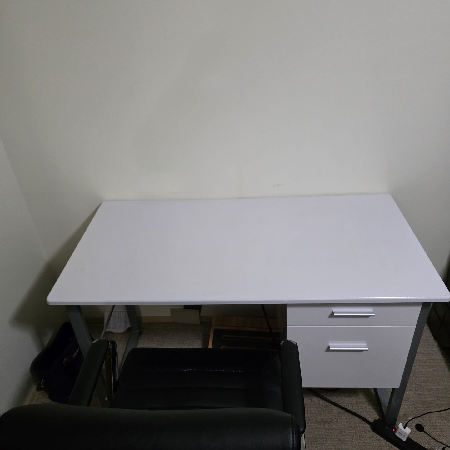White office table in great condition. Perfect for a room or a WFH setup. If you want the table by itself, its $80, with the chair is $120. Dims: 47"X 24". Height is 30"