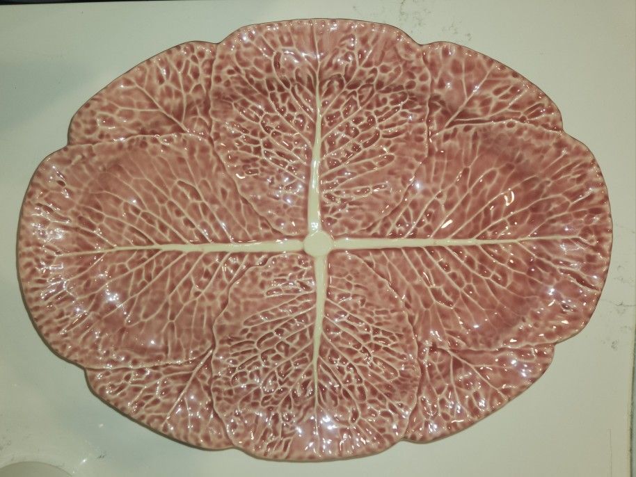 Bordallo Pinheiro Pink Cabbage Leaves Platter Made In Portugal