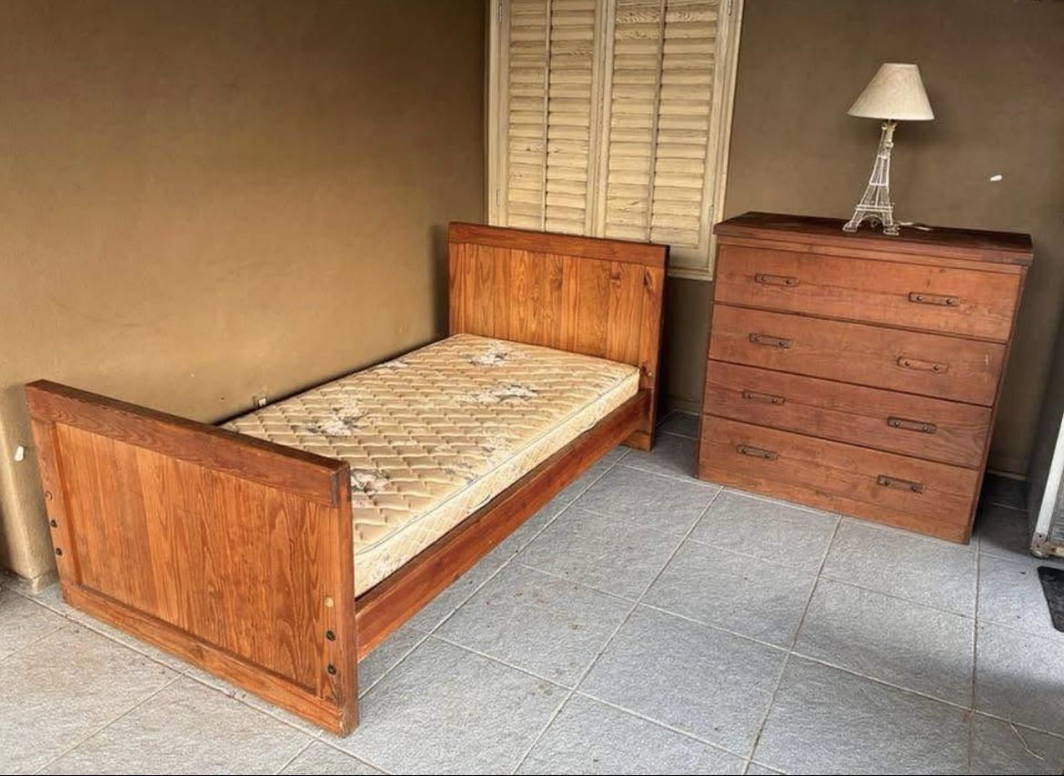 Recámara individual Base y cajonera en madera 100% Colchón medio uso en buenas condiciones $300dlls Laredo tx Área norte