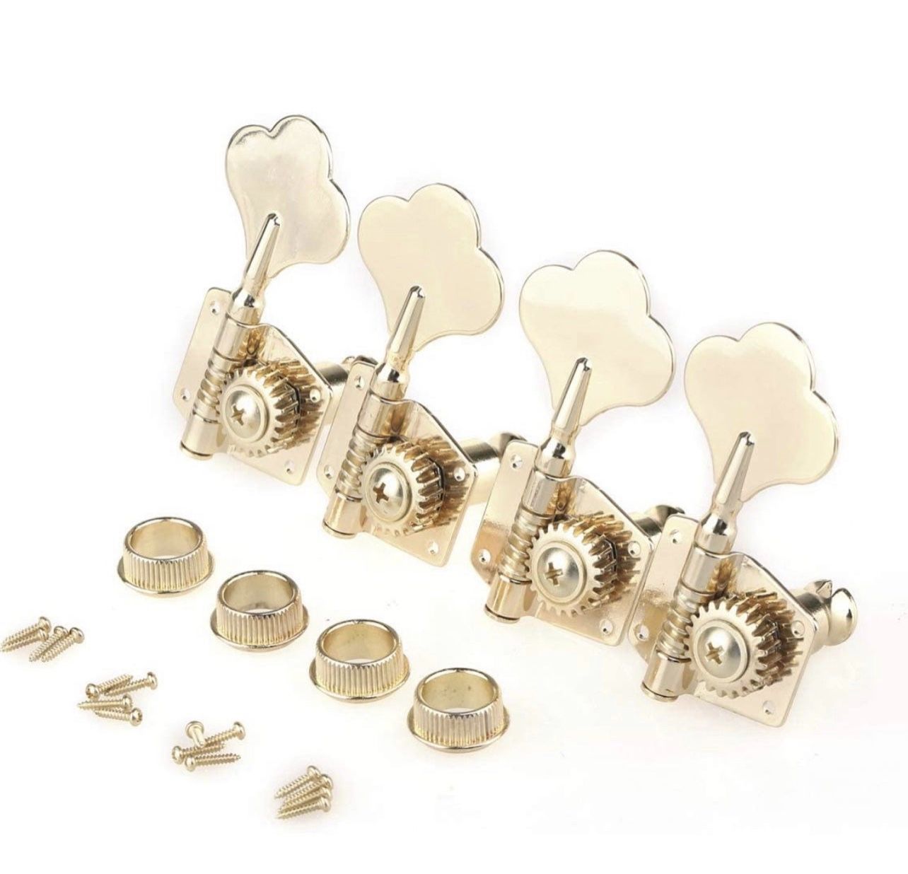 Fits electric bass, like JB PB style bass Fits for 19mm (3/4") diameter peg holes Full alloy metal made tuning key, open gear design, 1:19 gear ratio 4-in-line set, Includes all mounting accessories Package Includes: 4 Pieces Bass Tuning Pegs