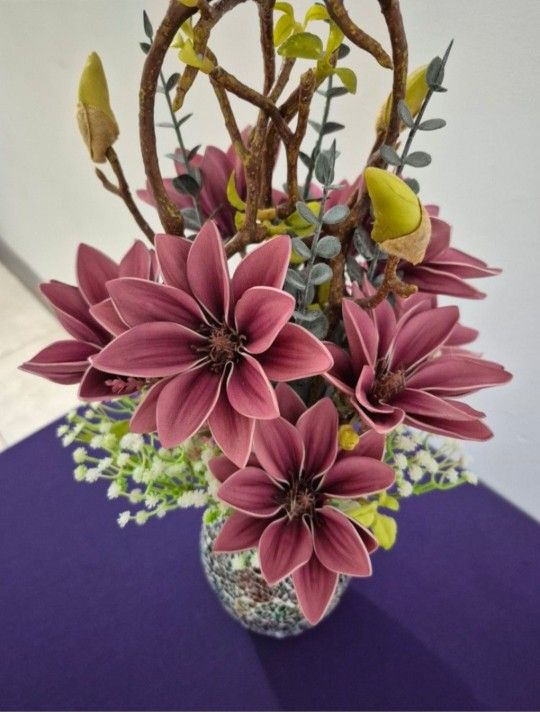 We have the 7th Vase from The Mosaic Magnolia Collection : Mosaic Magical Mauvement here @ Lasting Creations, the most uniquely popular 'Cracked-Styled' Wide-Ranging Colorful Mosaic Vase (View through sunlight to see all the colors). A Mauve-Based 9-Head Magnolia, Gypsophila, Eucalyptus, Sealed with Strawberry Polished Stone. This can be a great gift idea for someone down the road, maybe a birthday, maybe x-mas, maybe keep it for yourself. You could purchase this Mosaic Magnolia Collection : Mosaic Magical Mauvement @ $75 (Original Pricing), BUT NOW, at Lasting Creations... *** REDUCED 33% - $50 ***