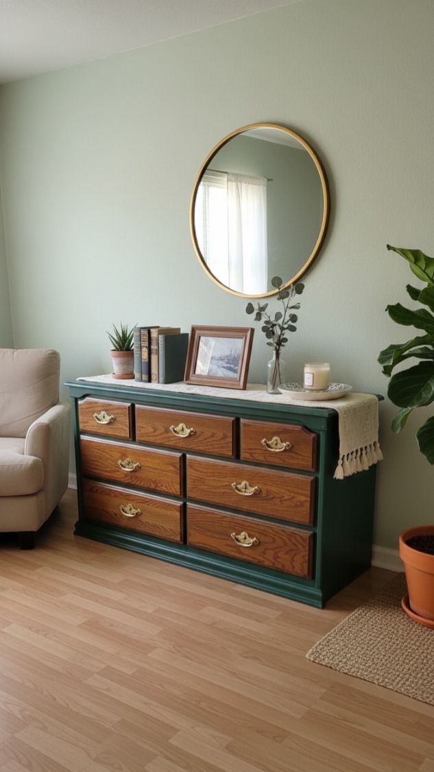 Mid-Century Inspired Emerald & Oak Dresser - Hand Finished