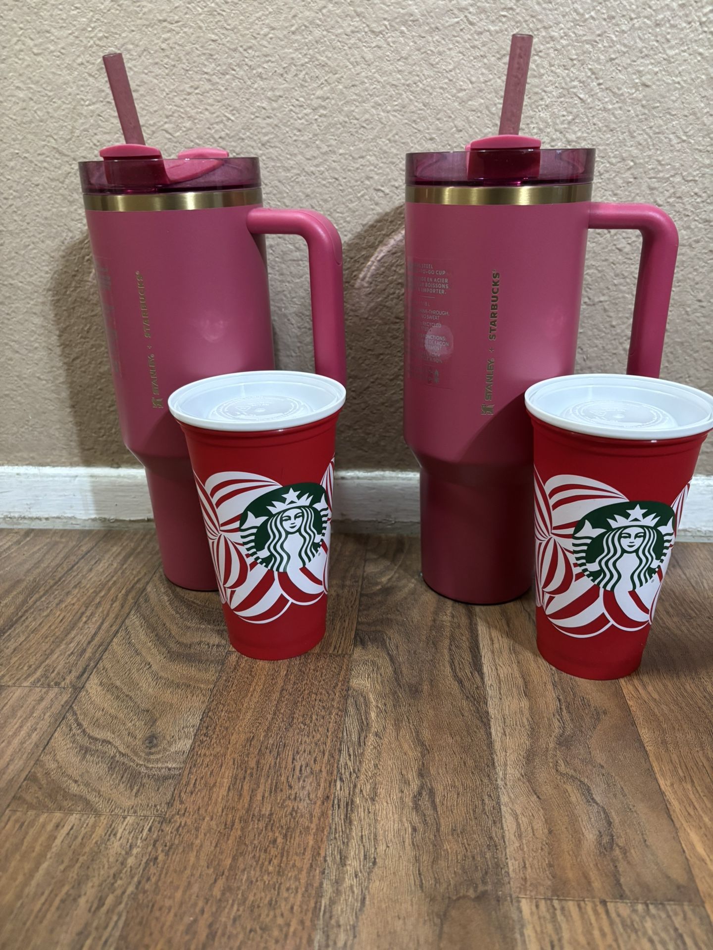 Ready to Sell. Starbucks Stanley Cups Local Pick up: 9917 Chapman Ave Garden Grove (in front of Carls Jr) Message me when you are ready to buy it. Cash and Firm. Respect the asking Price. $45 each set or $90 for both set