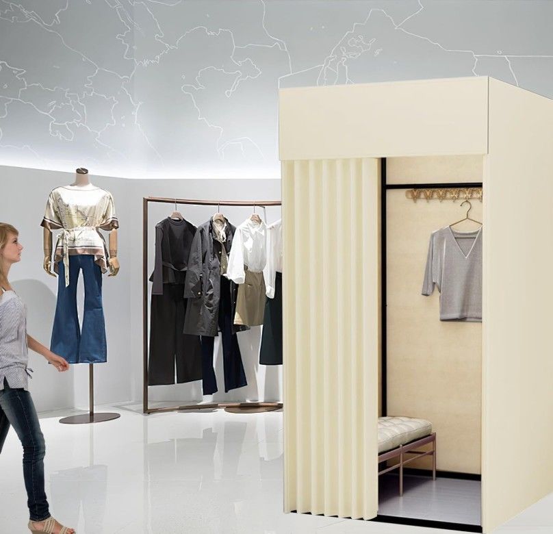Clothing Store Fitting Room with Shading Curtain, Portable Temporary Mobile Privacy Protection Dressing Room, Foldable Mall Simple Changing Room for Office Outdoor Activity, 200x100x95cm(Beige) 4271F