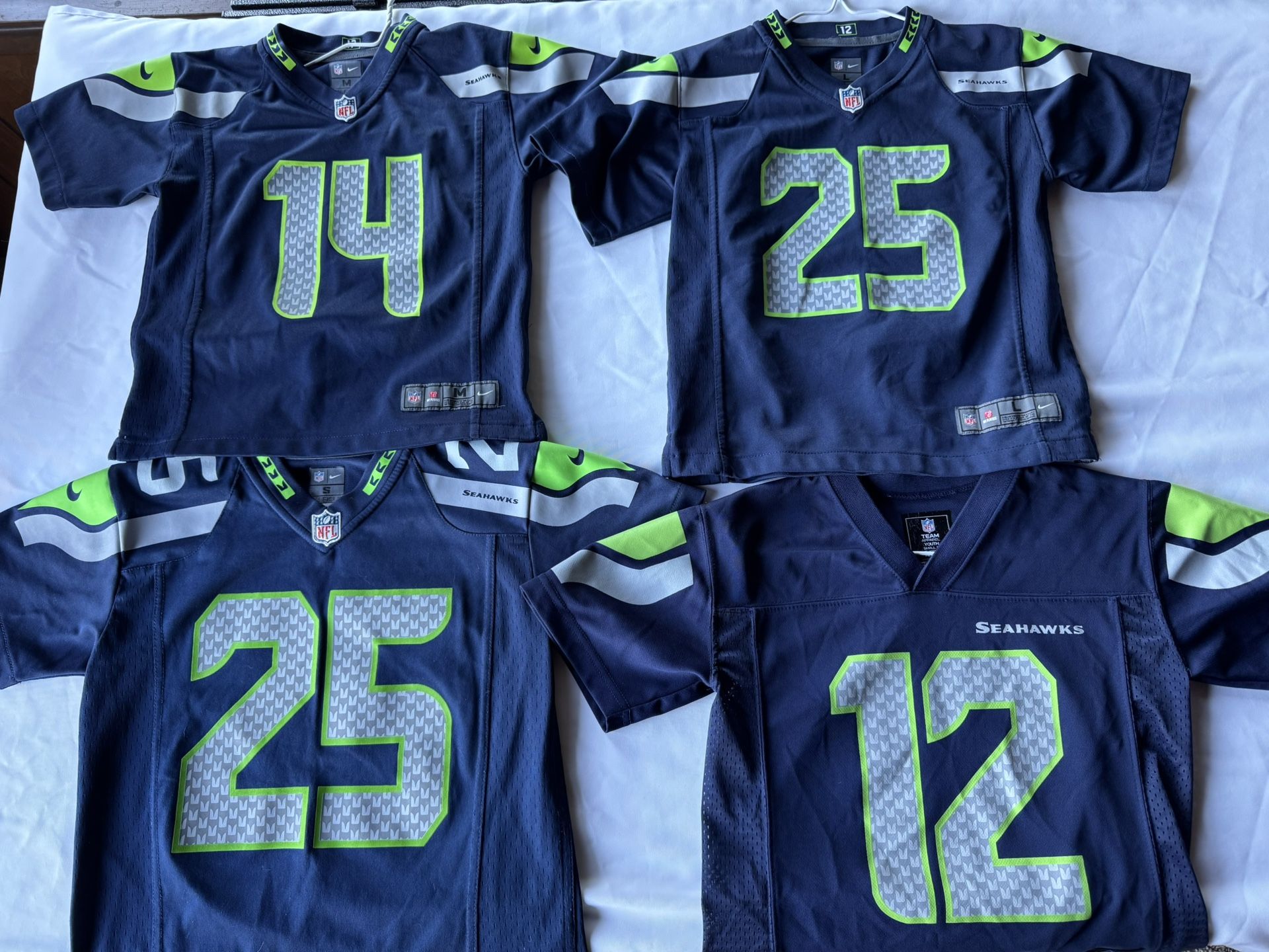 Kids Seattle Seahawks jerseys Top left- 5/6 Top right- 7/6X Both bottom- size 8 $40 each