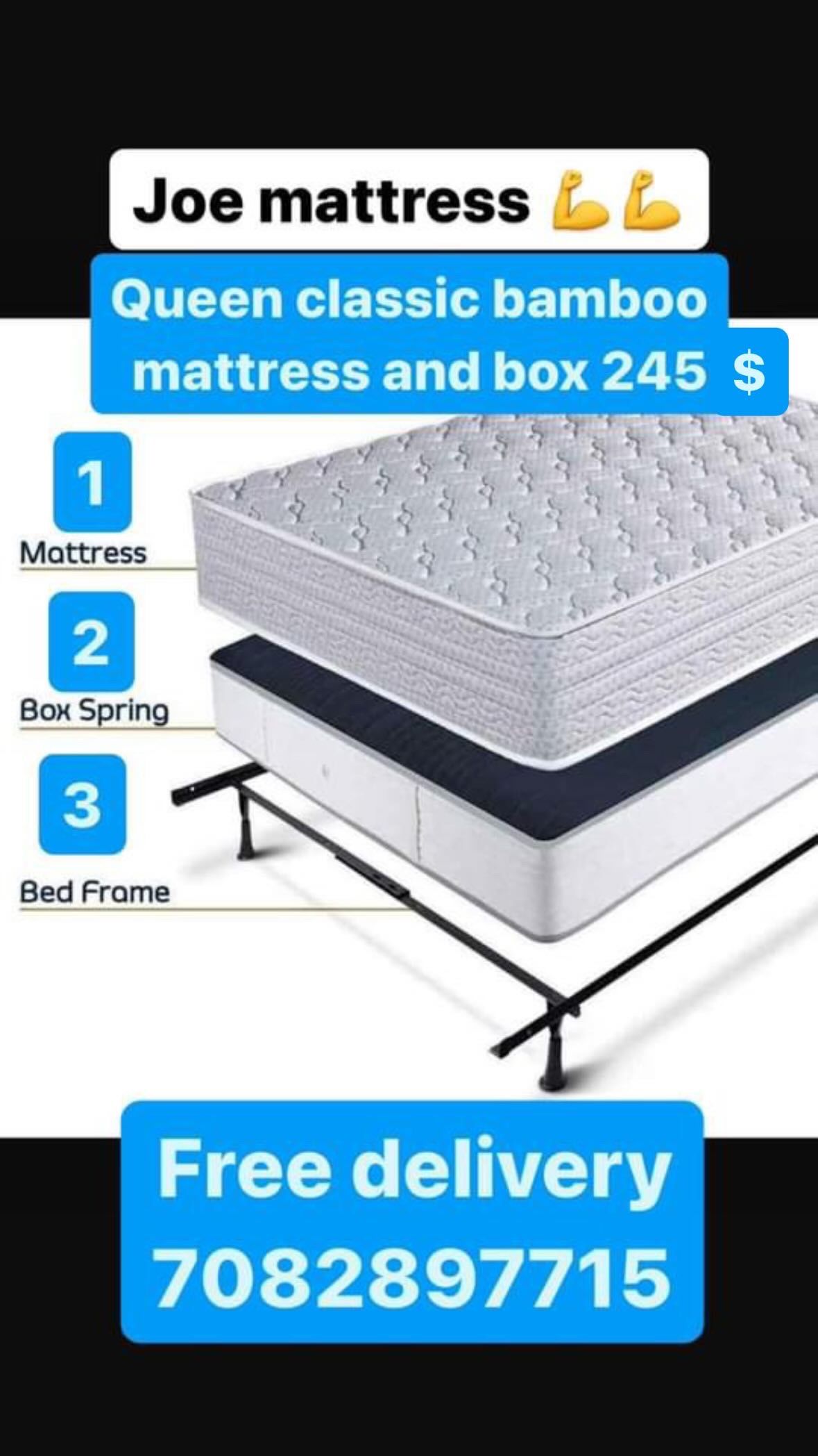 Huge sale for Mattress And Box Twin size mattress and box 150.$ full 190$ Queen 200$ king 290$. free delivery free set up 708….280….7715… cash or Zell