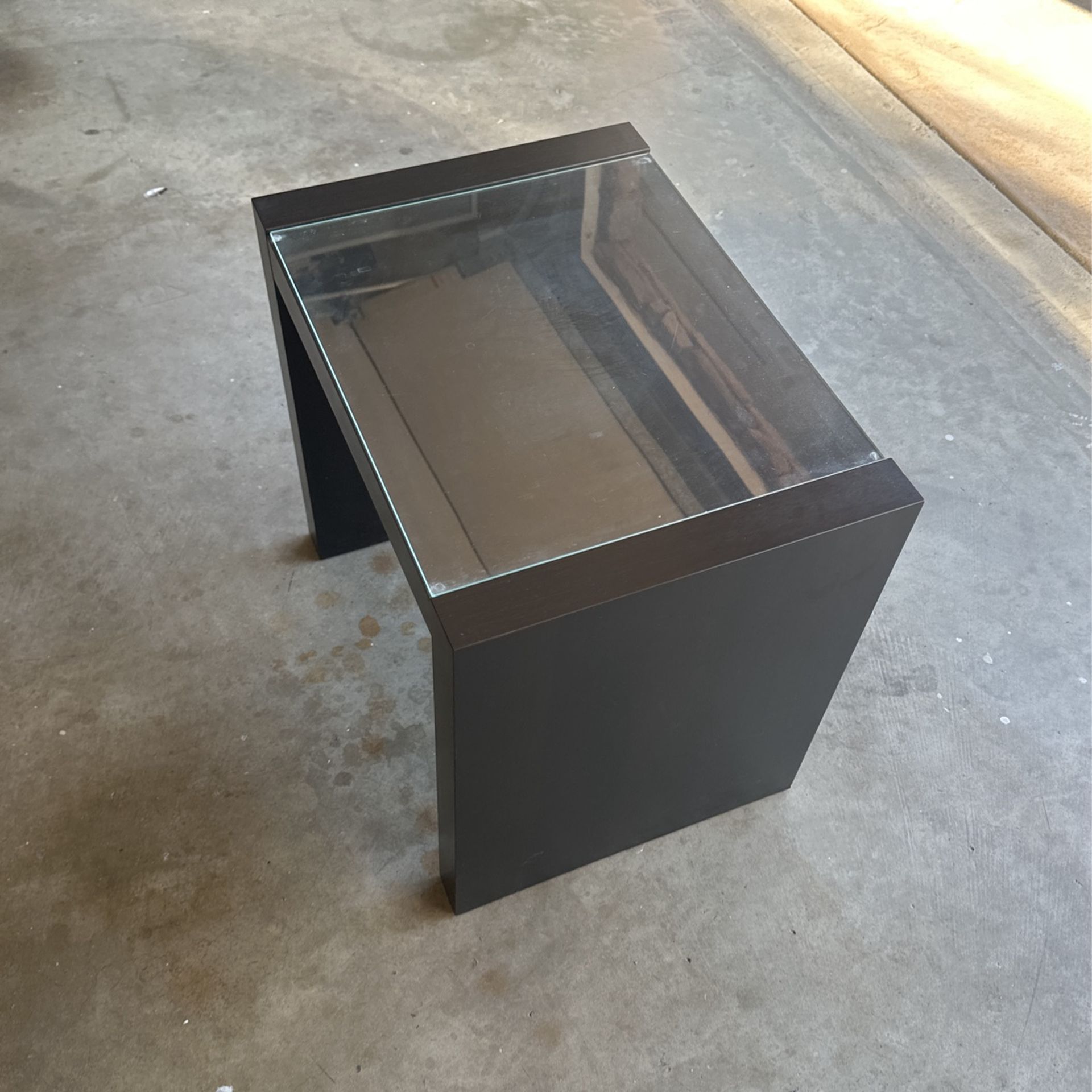 Dark brown side table from IKEA. Measures about 21” length, 20” height, 16” wide. In great condition. Table has a glass top. $10