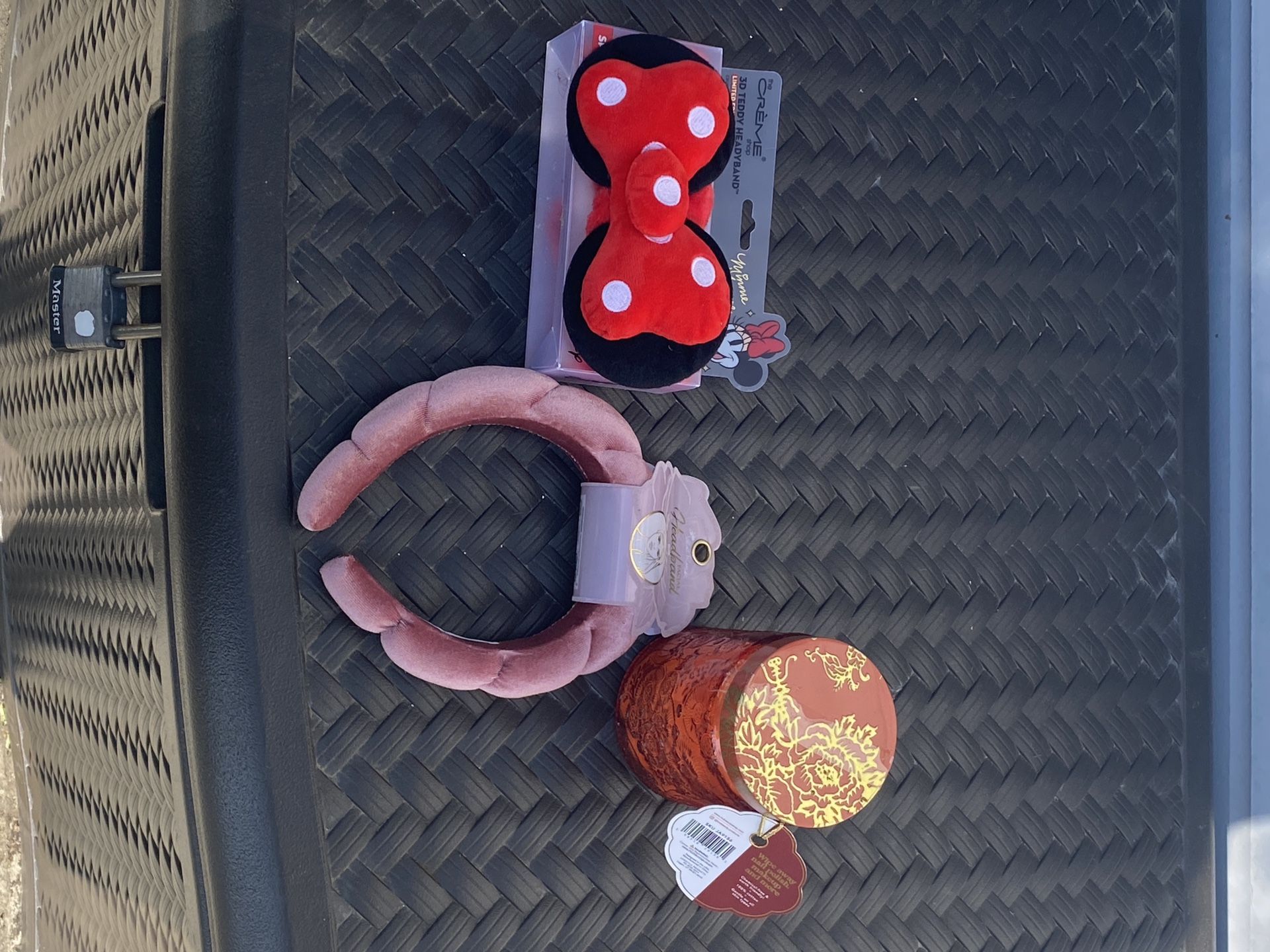 Head band, eye mask and cotton ball holder. My wife received this for Christmas, but never used it. Everything thing is brand new.