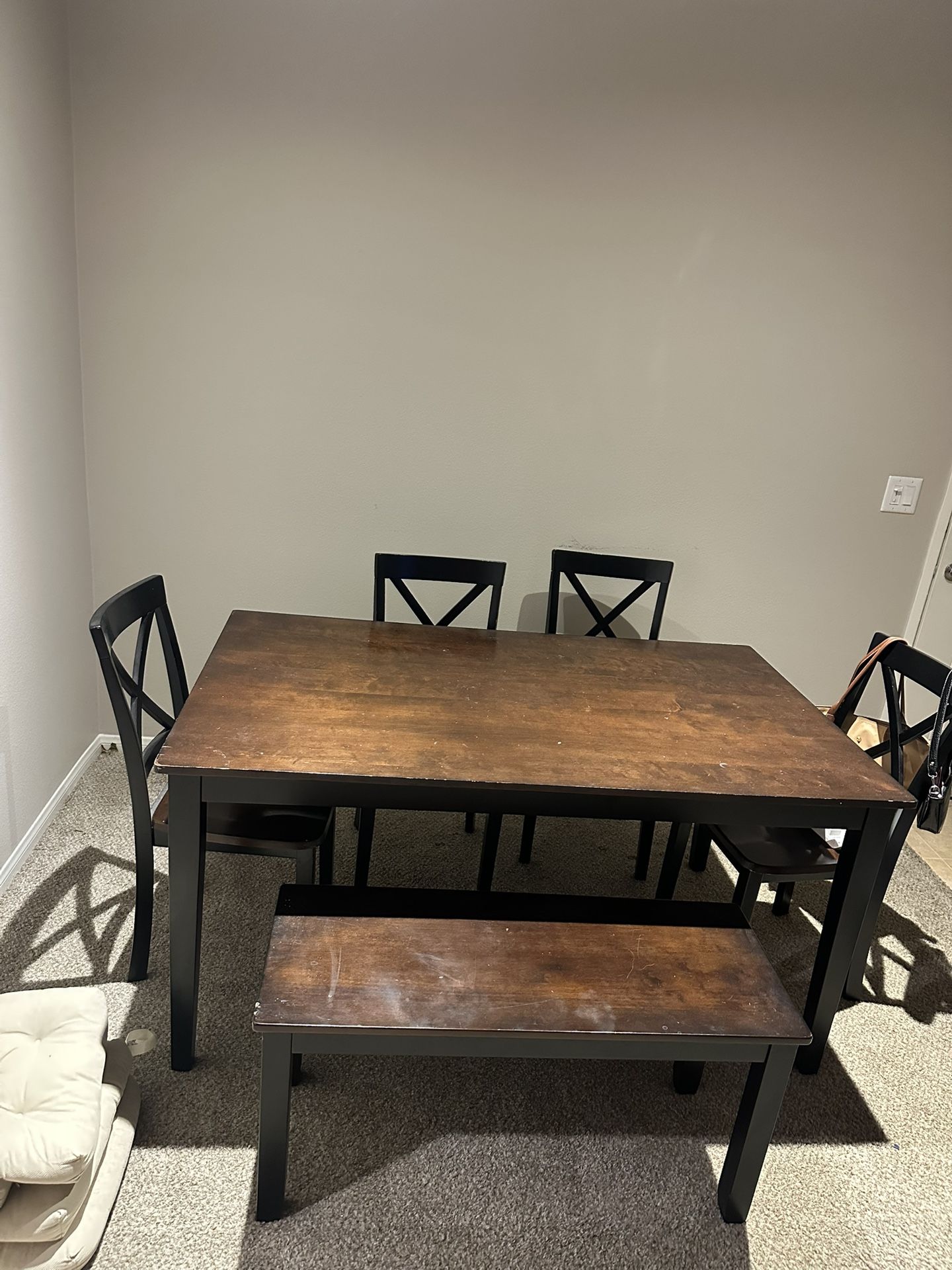 6 seat dining table. Has some scratches and water marks, but still in good condition. $80 obo