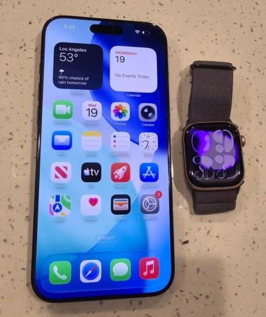 Both devices are SEVERELY SCRATCHED, but function normally. 16 Pro Max, unlocked, 256gb Apple watch 10, 42mm rose gold, unlocked
