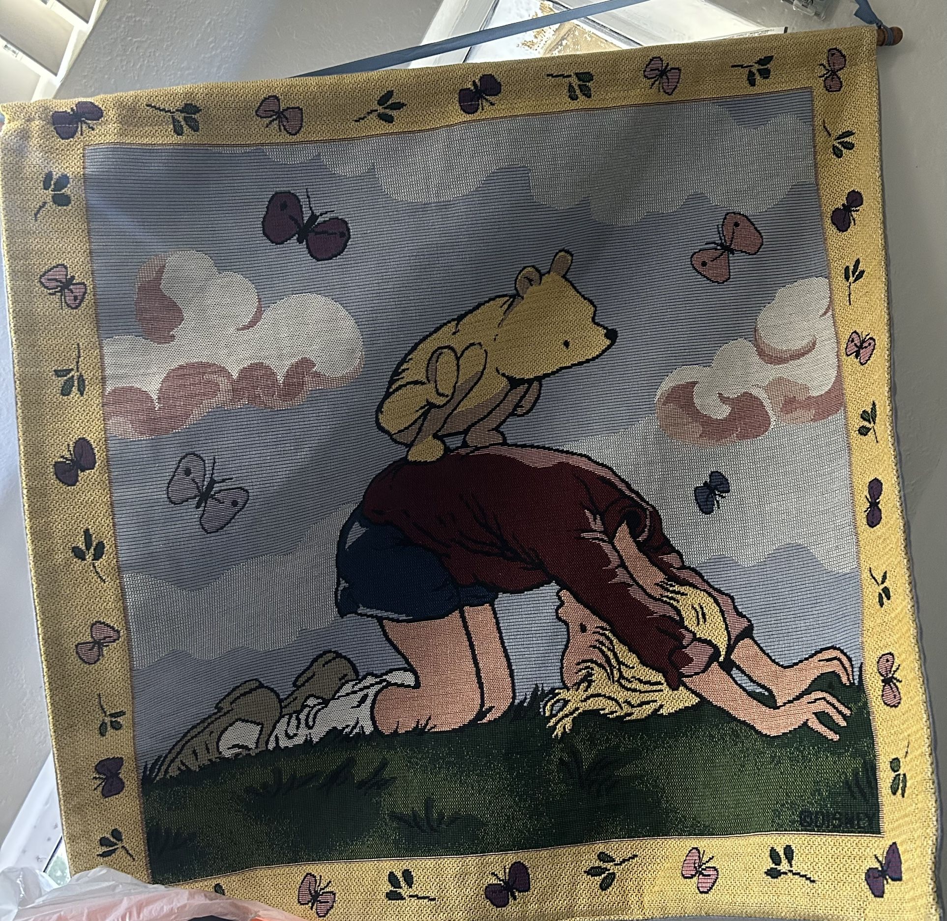 Vtg Disney Winnie the Pooh Tapestry Wall Hanging 37” X 27”